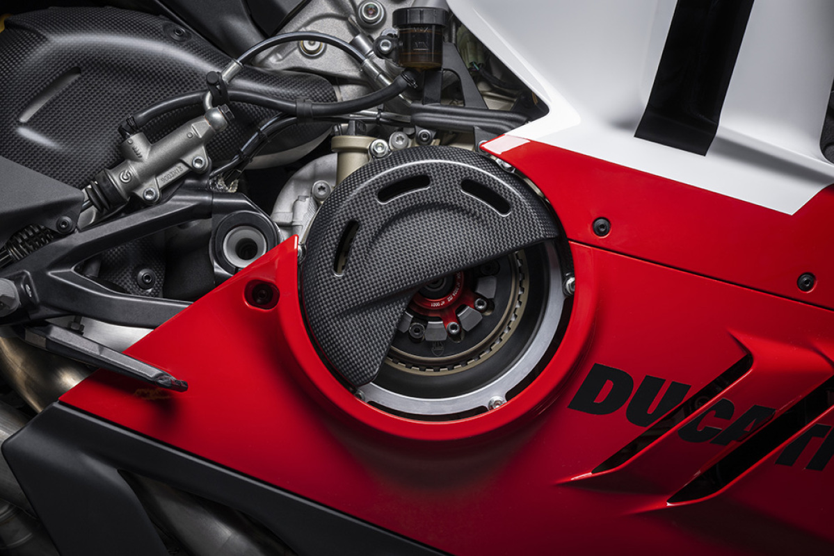 Silnik Desmosedici Stradale R w wersji na 2023 rok współpracuje z nowym suchym sprzęgłem, które wywodzi się z rozwoju komponentu używanego w WorldSBK przez oficjalny zespół Ducati. Zmniejszono średnicę i długość osiową (-24 mm), a przede wszystkim masa zmalała o około 800 gramów.