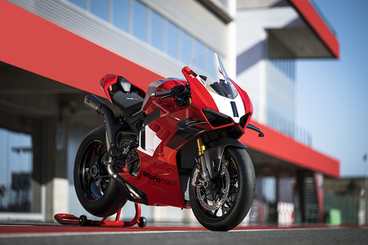 W celu zwiększenia wydajności motocykla na torze Ducati oferuje szeroką gamę akcesoriów. Tytanowy, pełny układ wydechowy Akrapovič z podwójnym tłumikiem jeszcze bardziej poprawia stosunek masy do mocy V4 R (zmniejszenie masy o 5 kg w porównaniu do standardowego układu i zwiększenie mocy do 237 KM). Wydech dostarczany jest wraz ze specjalnym mapowaniem, dzięki któremu wszystkie parametry DTC, DWC, DPL i DSC są dostosowane do nowych osiągów motocykla.