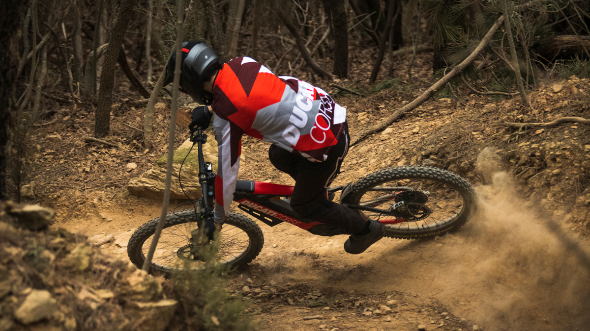 Ducati MIG-S jest zdolny do eksplorowania każdej ścieżki, zapewniając kierowcy doskonałe prowadzenie. Nowe zawieszenie, widelec RockShox 35 RC i amortyzator RockShox SuperDeluxe są regulowane i mają skok 150 mm z przodu i 140 mm z tyłu, idealny do bezpiecznego pokonywania każdego terenu. 12-biegowa przekładnia SRAM jest jeszcze dokładniejsza i bardziej niezawodna, a hamulce to mocne 4-tłoczkowe SRAM Guide T z tarczami 203 mm. Na 29-calowym kole przednim zamontowano opony Pirelli Scorpion Enduro S, a na 27,5-calowym z tyłu Pirelli Scorpion EMTB-S. Ogumienie zapewnia maksymalną przyczepność i trakcję na najbardziej wymagających odcinkach i przy dużych prędkościach. Akumulator Shimano 630Wh jest umieszczony pod ramą, zapewniając wyjątkowo nisko położony środek ciężkości i maksymalizując stabilność.