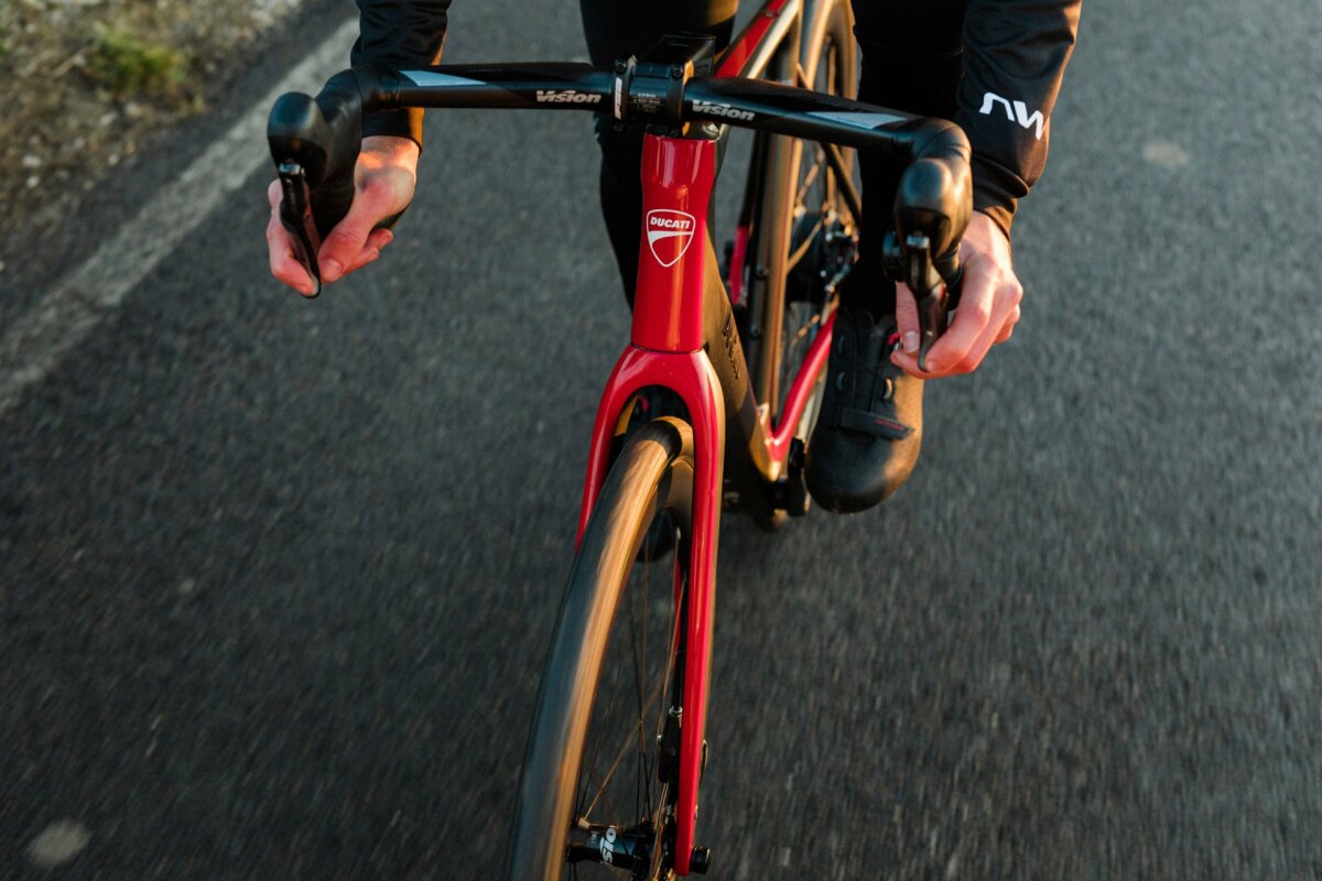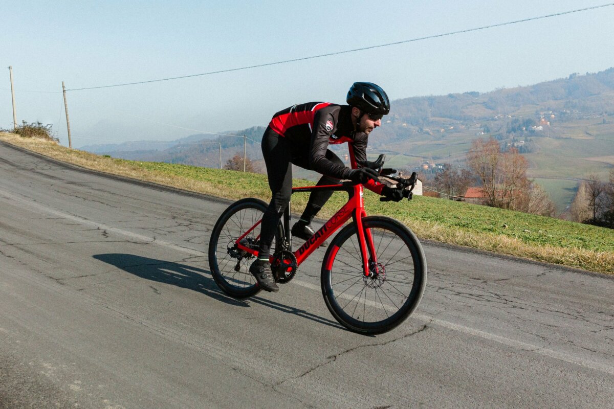 Dzięki niskiej wadze (12,4 kg w rozmiarze M) i niemal niezauważalnym oporom silnika Ducati Futa jest zawsze responsywna i szybka na płaskich odcinkach. Standardowy zestaw FSA K-Force WE zapewnia wyjątkowo płynną i szybką zmianę przełożeń 2x12 sterowaną bezprzewodowo, mocne hamulce tarczowe 160 mm z regulowanymi, karbonowymi dźwigniami UD i mechanizm korbowy z ramionami pedałów z włókna węglowego.