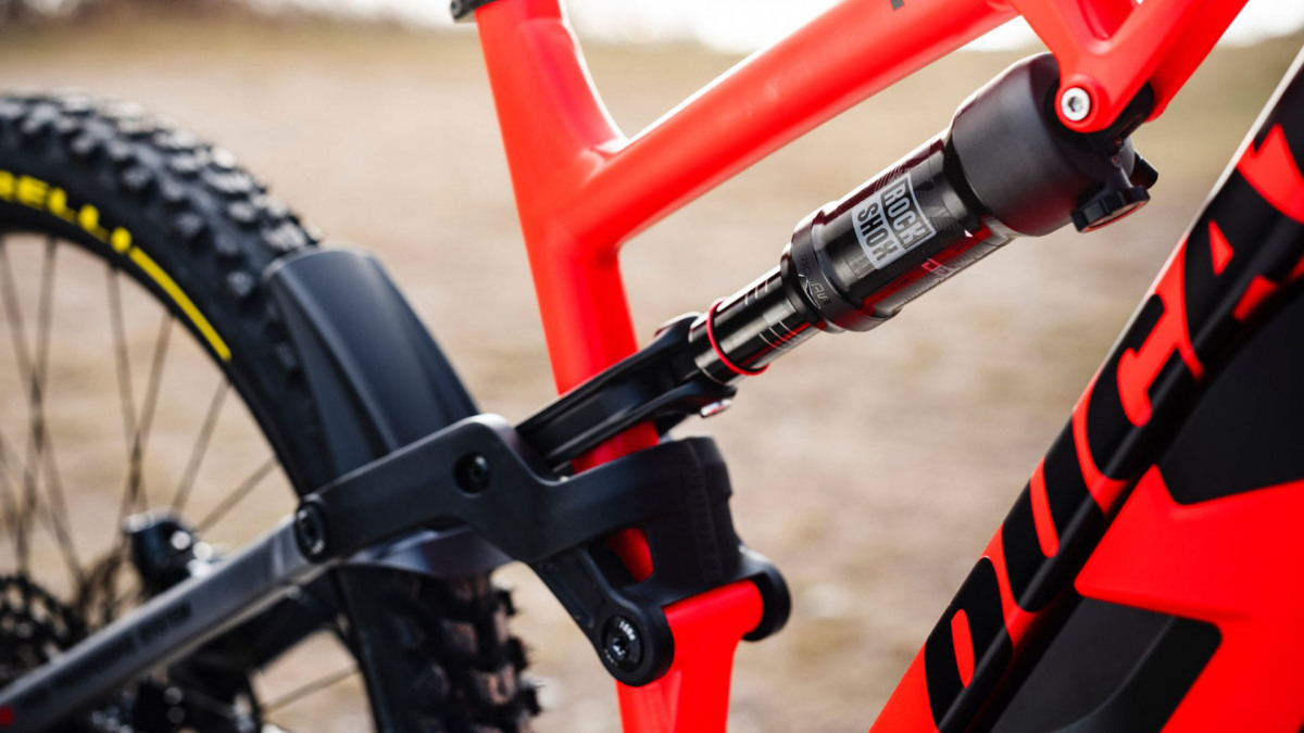 Widelec pneumatyczny Öhlins DH38 wyróżnia się 180 mm skoku i przypomina motocyklowy. Tylny amortyzator Öhlins TTX z 170-milimetrowym skokiem zapewnia niesamowitą kontrolę podczas zjazdów, przy jednoczesnym zachowaniu doskonałej wydajności na podjazdach. 11-biegowa tylna elektroniczna manetka Shimano Di2 XT zawsze zapewnia szybką i precyzyjną zmianę przełożeń, podczas gdy hamulce Magura MT7 z tarczami 220 mm z przodu i 203 mm z tyłu również pochodzą z motocykla i należą do najmocniejszych dostępnych na rynku . Obręcze z włókna węglowego Crankbrothers Synthesis w rozmiarach 29” z przodu i 27,5” z tyłu pomagają jeszcze bardziej poprawić precyzję jazdy, gwarantując doskonały stosunek masy do wytrzymałości. Całość uzupełnia karbonowa kierownica Renthal, siodełko Physical, a także karbonowa osłona akumulatora.
