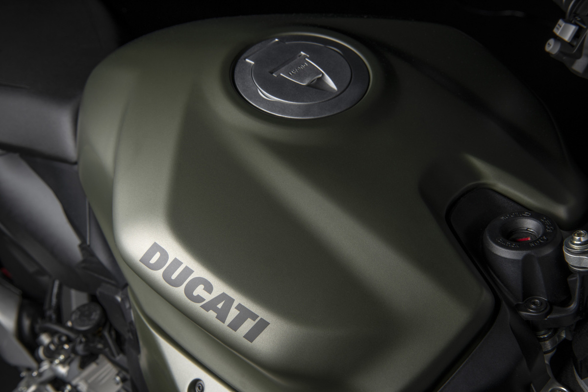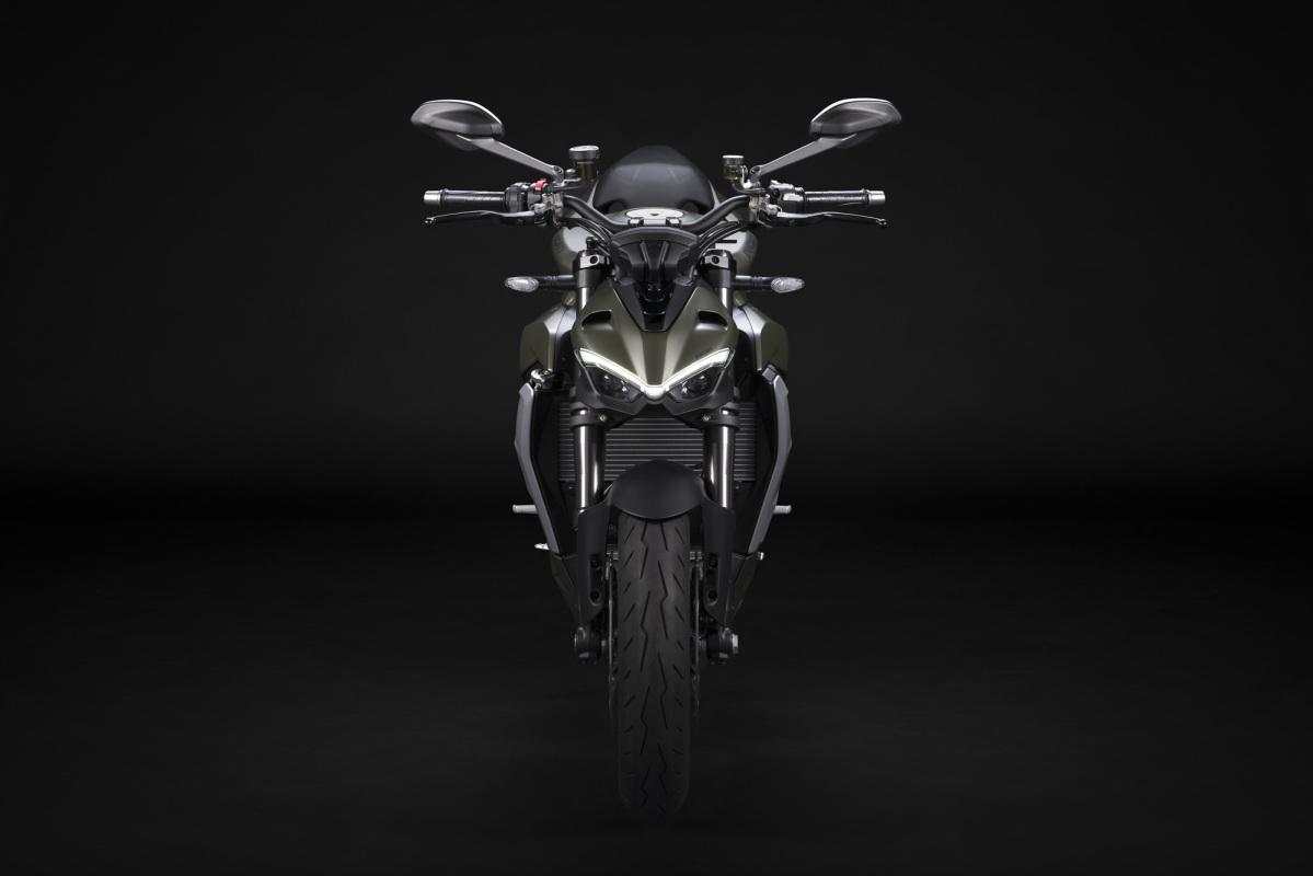 Ducati rozszerza gamę Streetfightera V2 o nową, wyjątkową kolorystykę Storm Green. Odcień zieleni wybrany przez Centro Stile Ducati podkreśla czyste i ostre linie Streetfightera V2, uwydatniając jego unikalny charakter. Matowe wykończenie tworzy ciekawe wizualnie efekty na różnych powierzchniach motocykla.