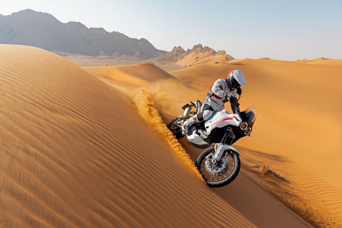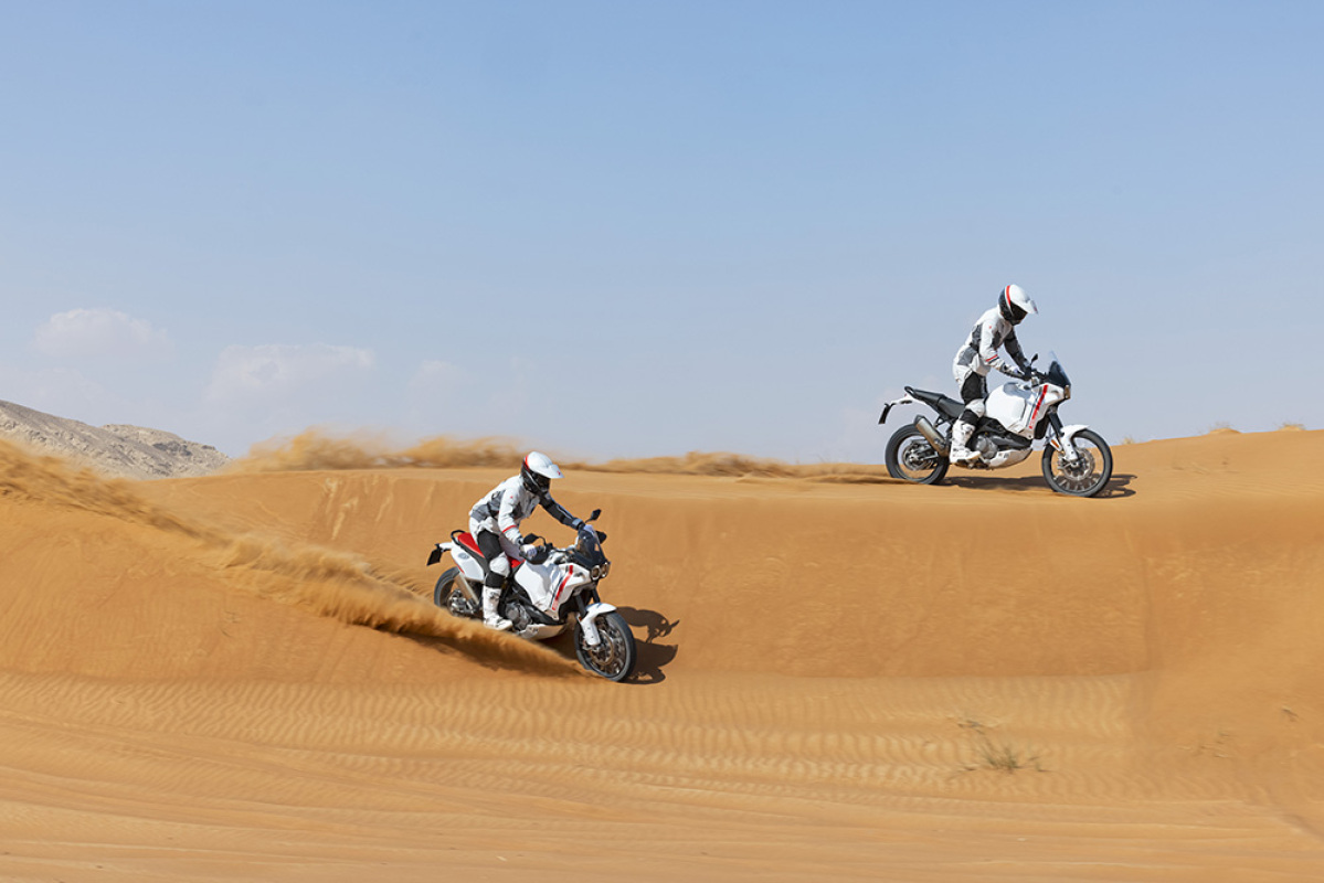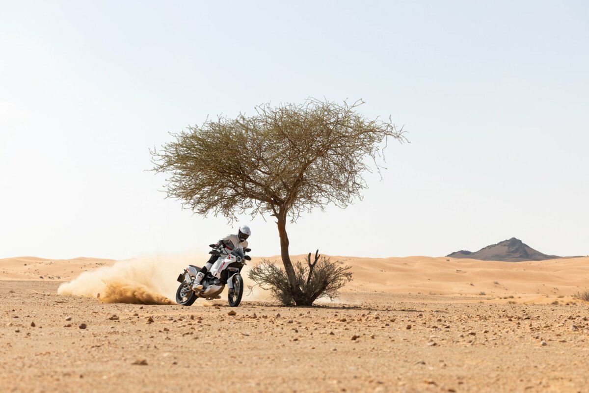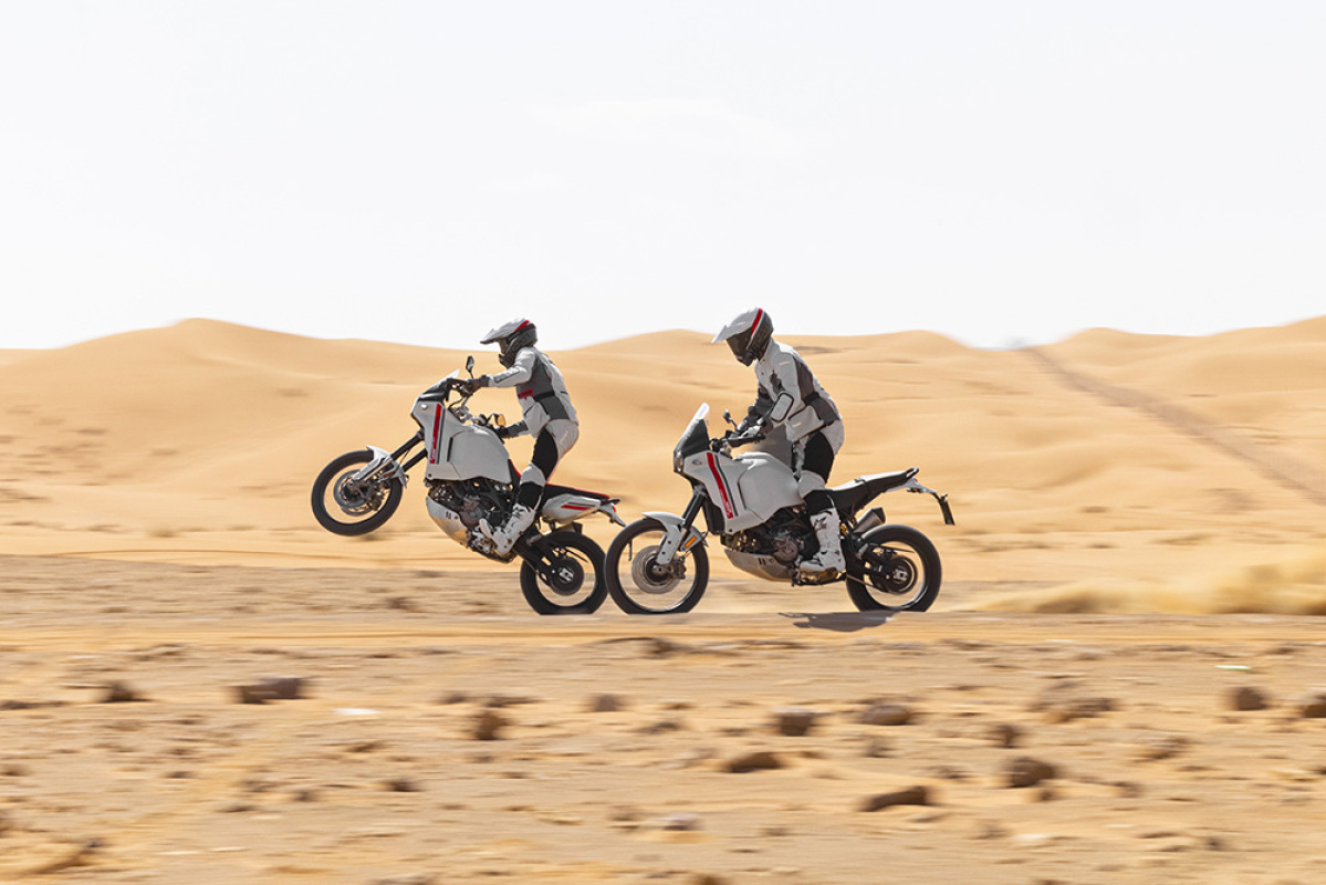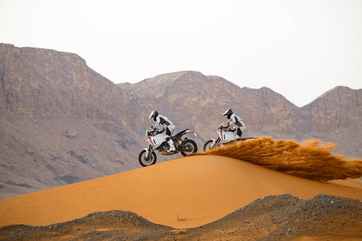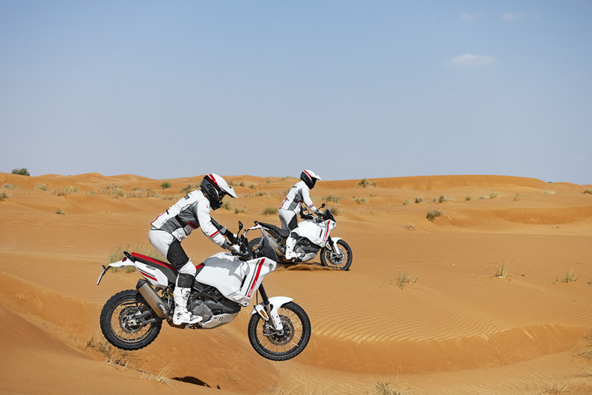 Tryb jazdy Enduro pozwala pokonywać najbardziej wymagające odcinki i jest bardzo precyzyjny dzięki zmniejszonej mocy. Z kolei tryb jazdy Rally, z pełną mocą silnika i zredukowaną kontrolą elektroniczną, jest przeznaczony dla doświadczonych motocyklistów, którzy chcą w pełni wykorzystać możliwości terenowe Ducati DesertX.