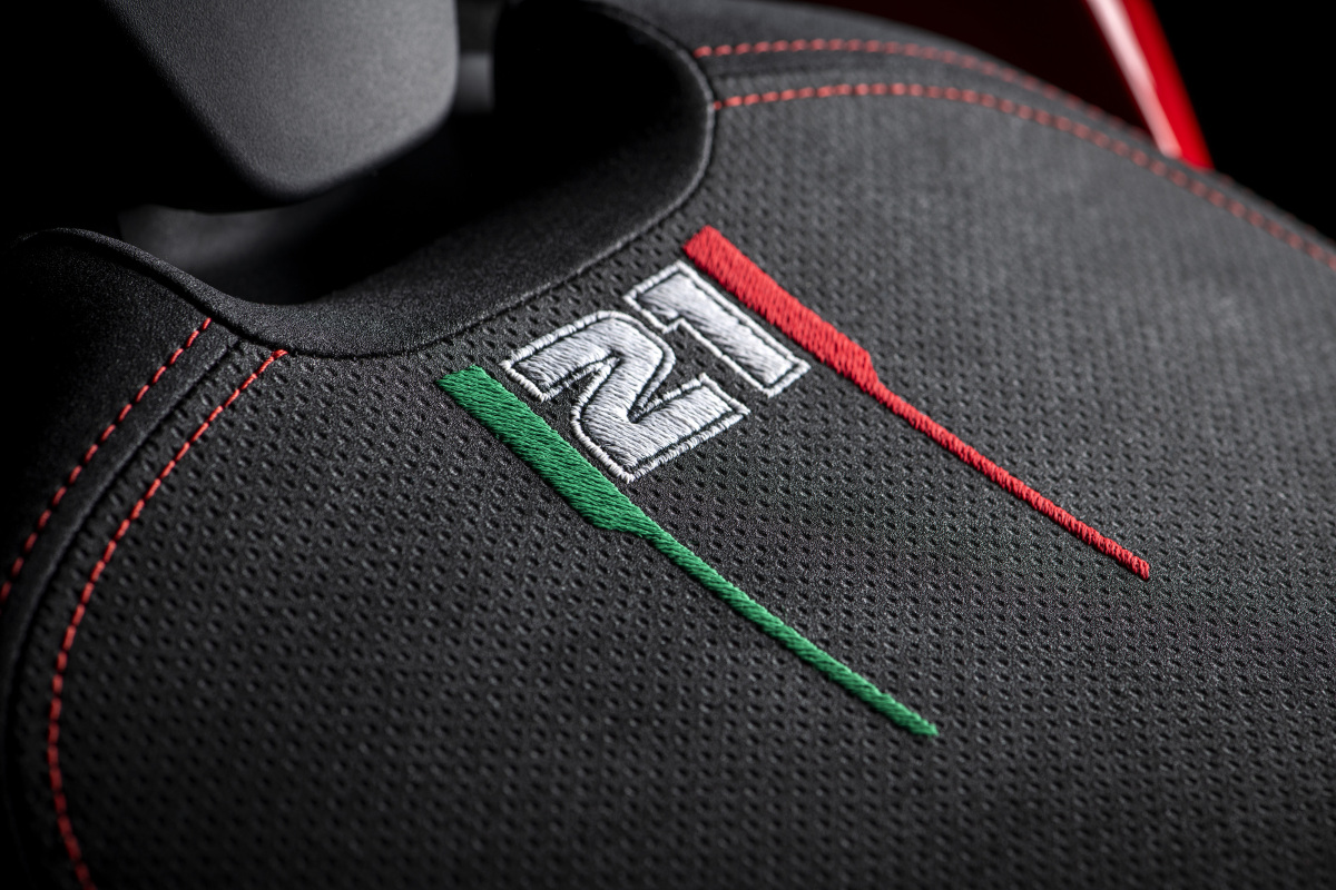Wyposażenie uzupełniają sportowe manetki, osłona tłumika z włókna węglowego i tytanu oraz siedzenie kierowcy wykonane poprzez połączenie dwóch różnych materiałów technicznych z podwójnymi, czerwonymi szwami. Na siedzisku wyhaftowany jest numer 21 Troya, który wraz z zielonymi i czerwonymi pasami tworzy włoską flagę. Motocykl jest również wyposażony w specjalny system hamulcowy oraz inne, unikalne elementy techniczne.