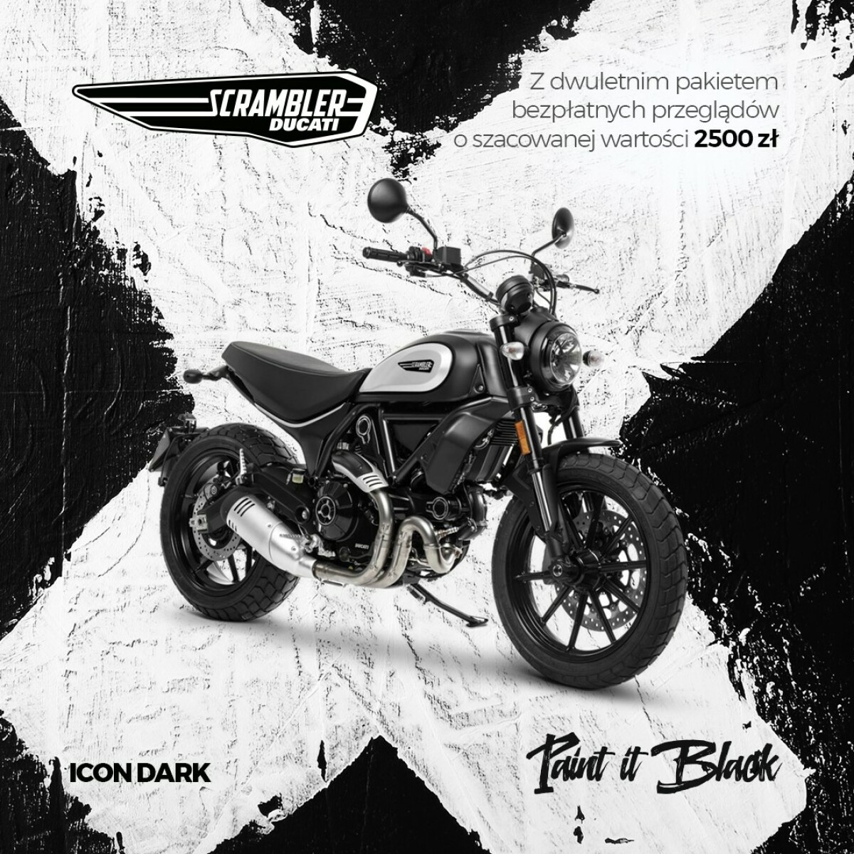 Oferta promocyjna jest ograniczona czasowo, a ilość pojazdów limitowana. Obejmuje motocykle Scrambler Icon, Icon Dark i Urban Motard, które zostały zakupione w autoryzowanej sieci Ducati w Polsce i zarejestrowane w dniach od 2 listopada do 31 grudnia 2022. Promocja o szacowanej wartości 2500 PLN dotyczy maksymalnie trzech przeglądów, które są zgodne z tabelą obsługową producenta. Oferta jest ograniczona czasowo do maksymalnie dwóch lat od daty zakupu i obejmuje motocykle z przebiegiem do 20 000 kilometrów.
