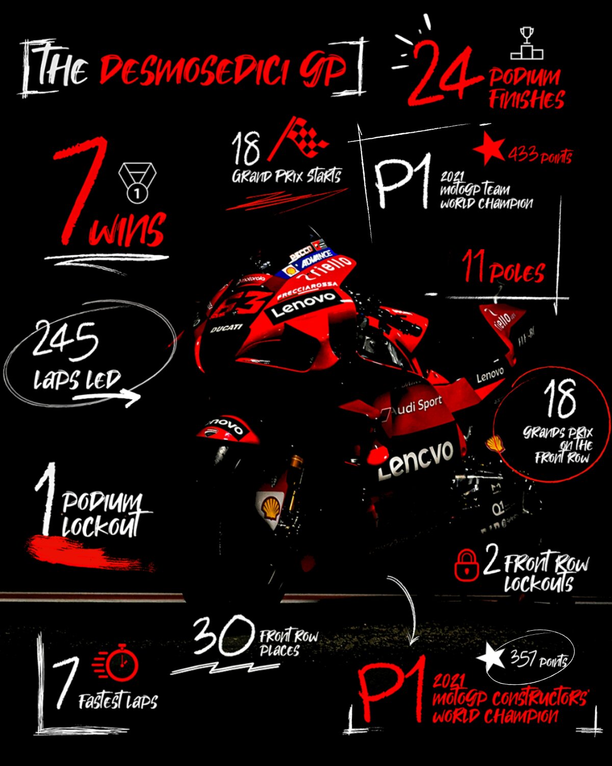W ostatnią niedzielę na torze imienia Ricardo Tormo, niedaleko Walencji w Hiszpanii, zakończył się sezon MotoGP, który pozostanie w historii Ducati. Czas na podsumowanie tego fantastycznego sezonu w liczbach.