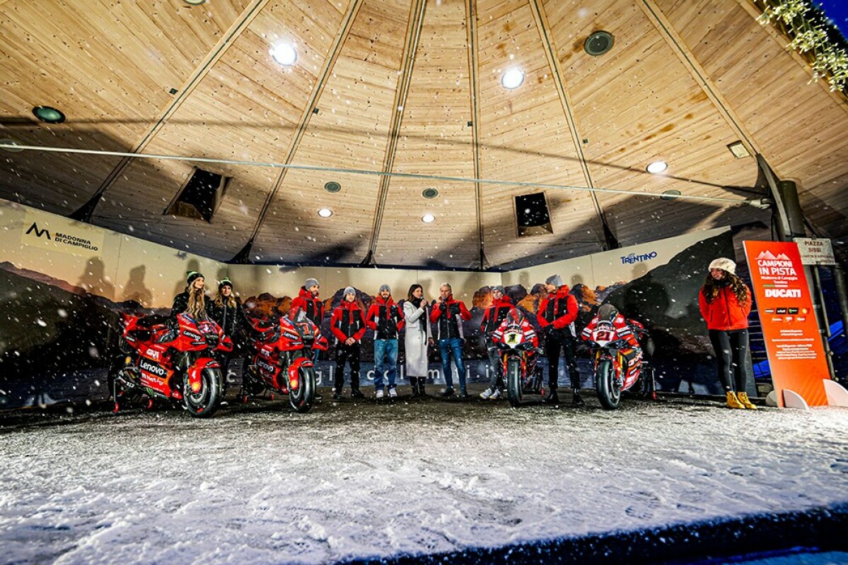 Oficjalna prezentacja zespołów Ducati odbyła się w poniedziałkowy poranek 23 stycznia w Palacampiglio i była transmitowana na żywo w kanałach cyfrowych. Po południu bohaterowie Ducati spotkali się z publicznością w centrum Madonna di Campiglio. Pokazano również motocykle, którymi Mistrzowie Świata będą ścigać się w tym sezonie. Francesco Bagnaia i Alvaro Bautista pojadą z numerami 1.