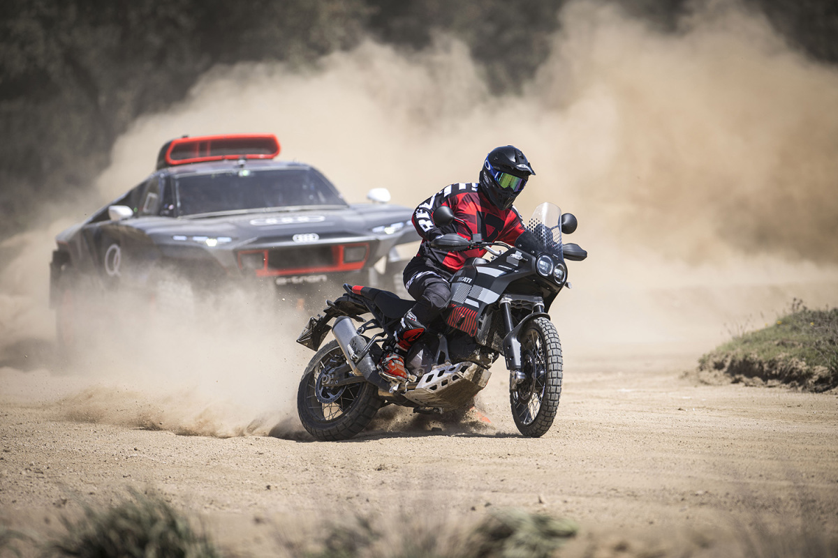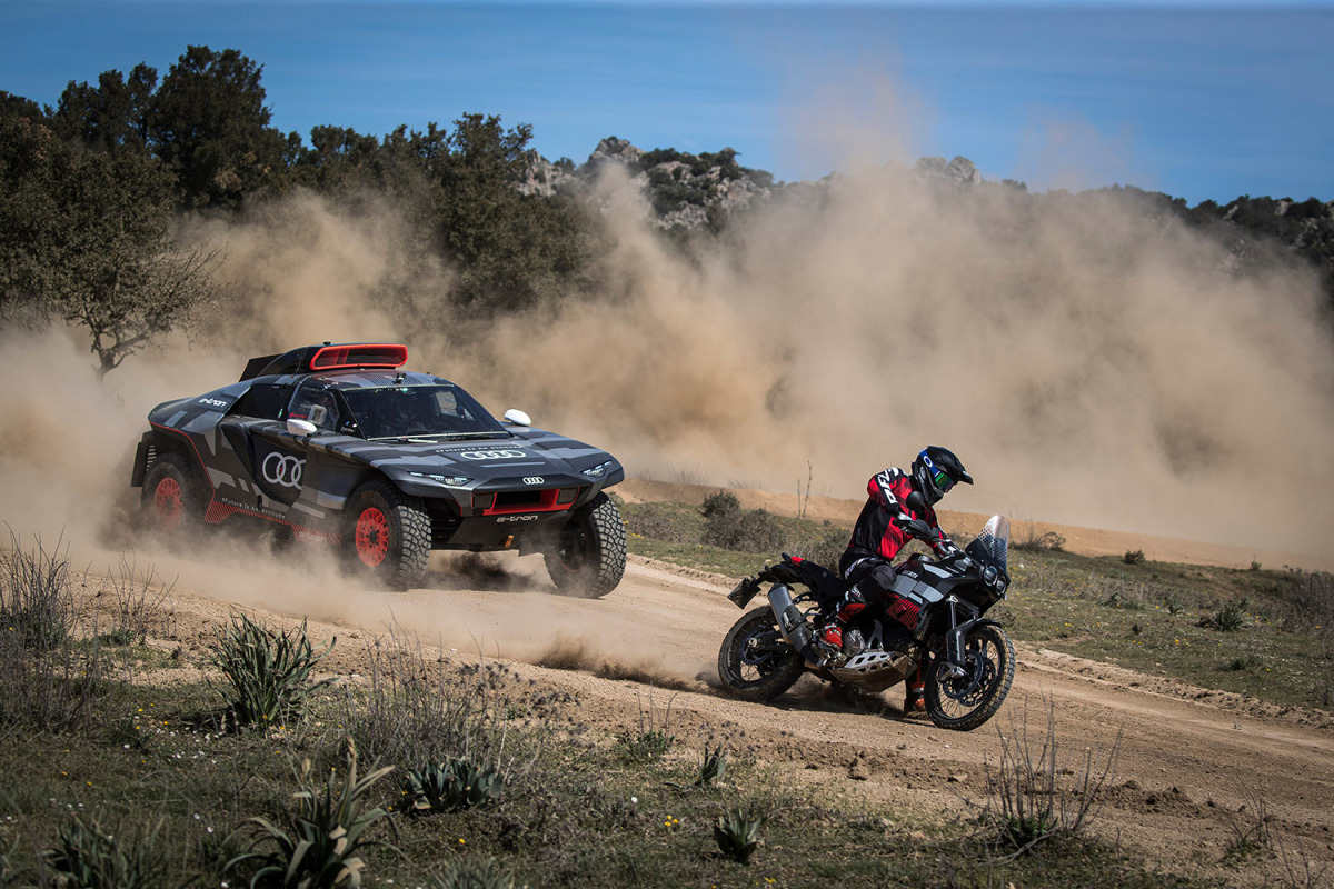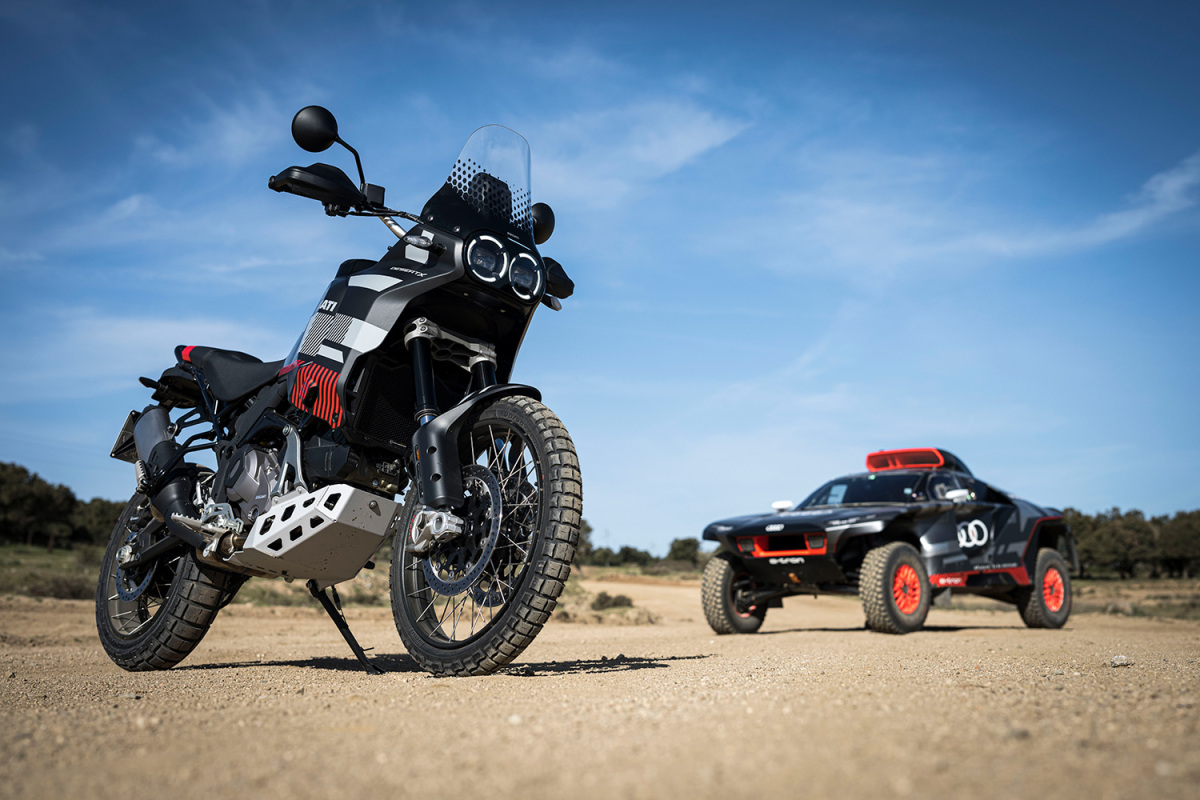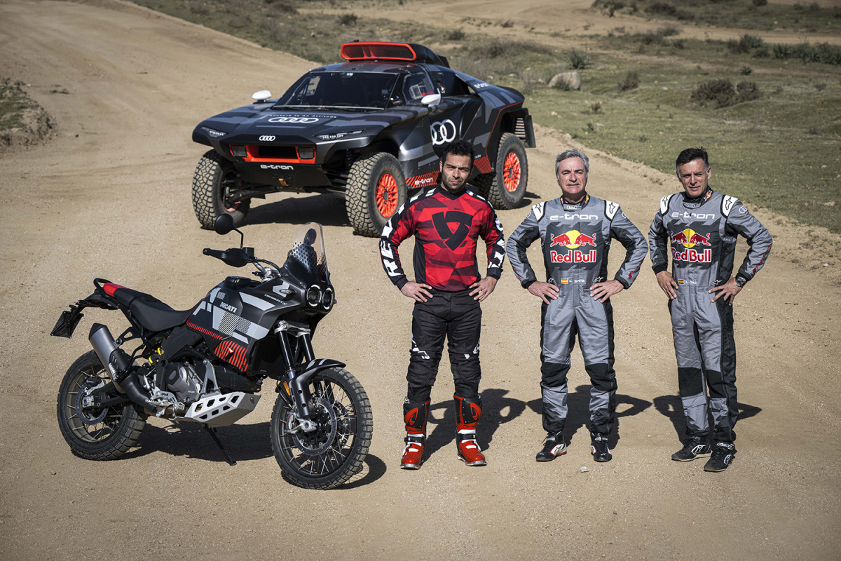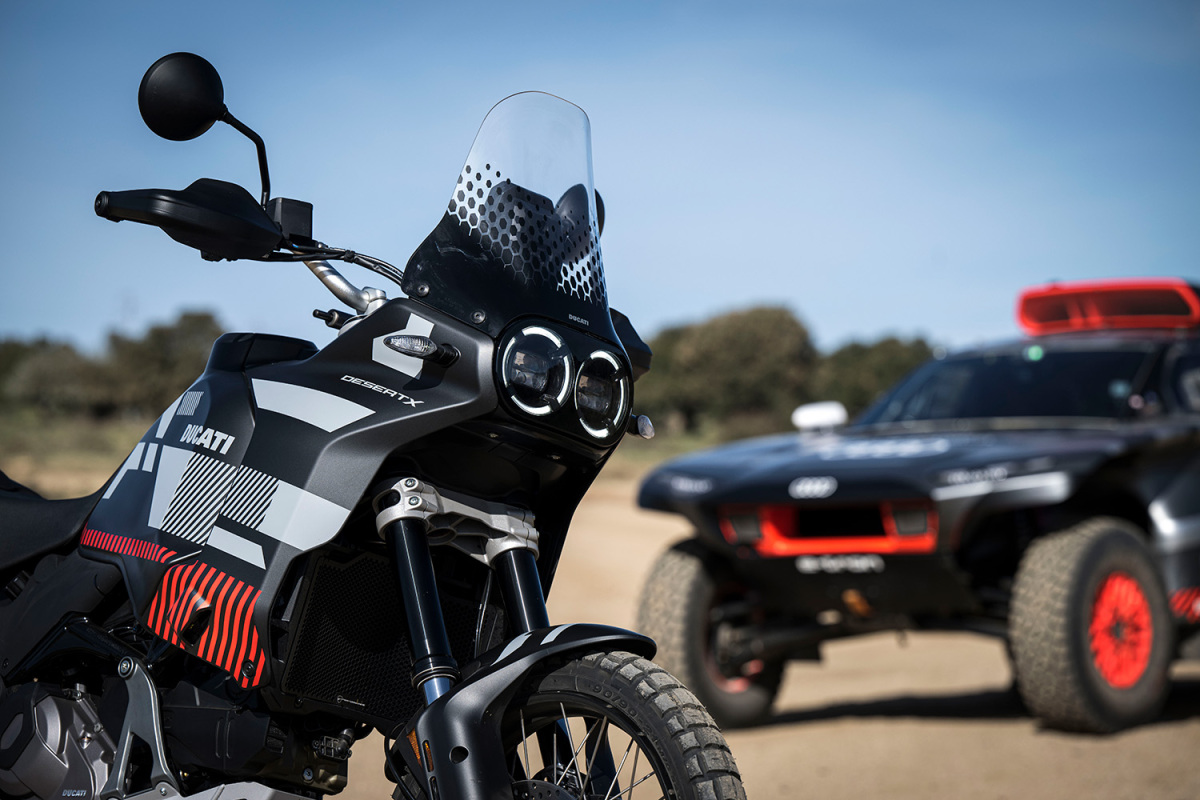 Najbardziej oczekiwany motocykl 2022 roku i zaawansowany technologicznie samochód rajdowy spotkały się na Sardynii, na specjalnym wydarzeniu zorganizowanym przez Ducati i Audi, podczas którego DesertX i RS Q e-tron testowane były przez przedstawicieli międzynarodowych mediów. Dodatkową atrakcją była obecność Danilo Petrucciego, który startował w tegorocznym Dakarze, a także oficjalnego zespołu Audi, który reprezentowali Emil Bergkvist, Stéphane Peterhansel, Edouard Boulanger, Carlos Sainz i Lucas Cruz.