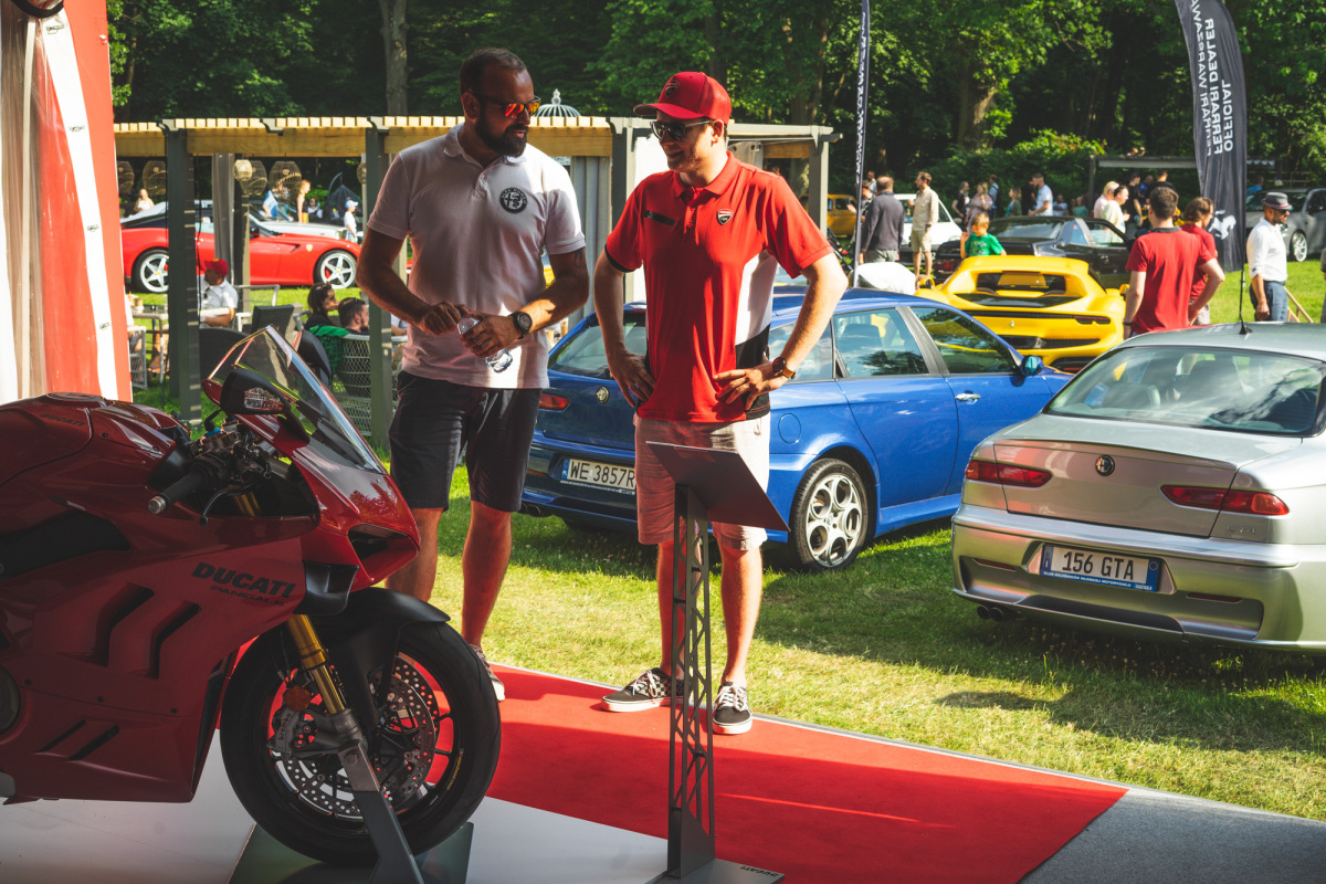 Włoskie perełki na dwóch i czterech kołach prezentowały się zjawiskowo w parkowej przestrzeni Pałacu Rozalin. Przekrój maszyn uczestników zlotu był imponujący. Obok siebie można było zobaczyć zarówno pojazdy zabytkowe, jak i najnowsze modele, samochody marzeń z plakatów, jak również leciwe auta z ciekawą historią. Nie zabrakło oczywiście włoskich jednośladów, a najliczniejszą grupę stanowili Ducatisti.