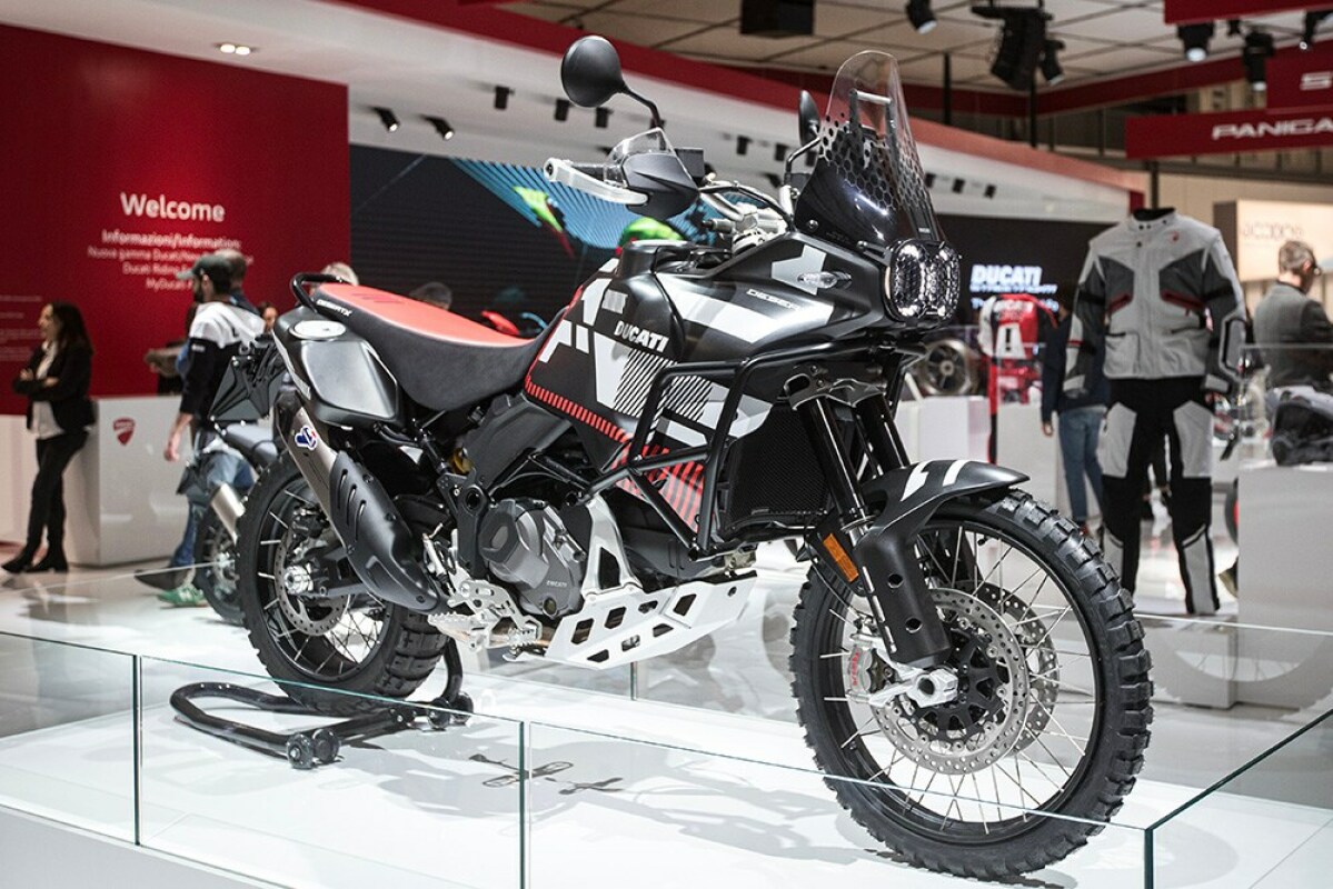 Wraz z motocyklami ze świata Ducati Corse, producent z Borgo Panigale zaprezentował też wszystkie nowości z gamy na rok 2023. Serce stoiska stanowiła eksplozja kolorów „Next Gen Freedom” Scrambler Ducati z trzema nowymi modelami: Icon, Full Throttle i Nightshift. Miłośnicy dalekich podróży motocyklowych podziwiali nową Multistradę V4 Rally. DesertX pokazany został w nowym malowaniu RR22, inspirowanym Audi RS Q e- tron, który brał udział w ostatnim Dakarze. Czołowy przedstawiciel supersportowej rodziny Ducati, nowe Panigale V4 R, olśniewało technologią niespotykaną wcześniej w produkcji seryjnej, a także liczbami: 240,5 KM mocy i 16 500 obr./min. Rodzina Streetfighter zaprezentowana została w składzie obejmującym model V2 w barwach Storm Green, V4 S w malowaniu Grey Nero oraz V4 SP2 w numerowanej serii. Topowy Monster SP uzupełnił gamę Monstera i dzięki doskonałym komponentom gotowy jest do oferowania maksymalnej zabawy. Diavel V4, swoją silną osobowością, wyrafinowaną stylistyką i eleganckimi liniami, ściągał uwagę olbrzymiej liczby zwiedzających. Wszystkie modele zostały wcześniej zaprezentowane internetowo w formie serii siedmiu odcinków Ducati World Première 2023.