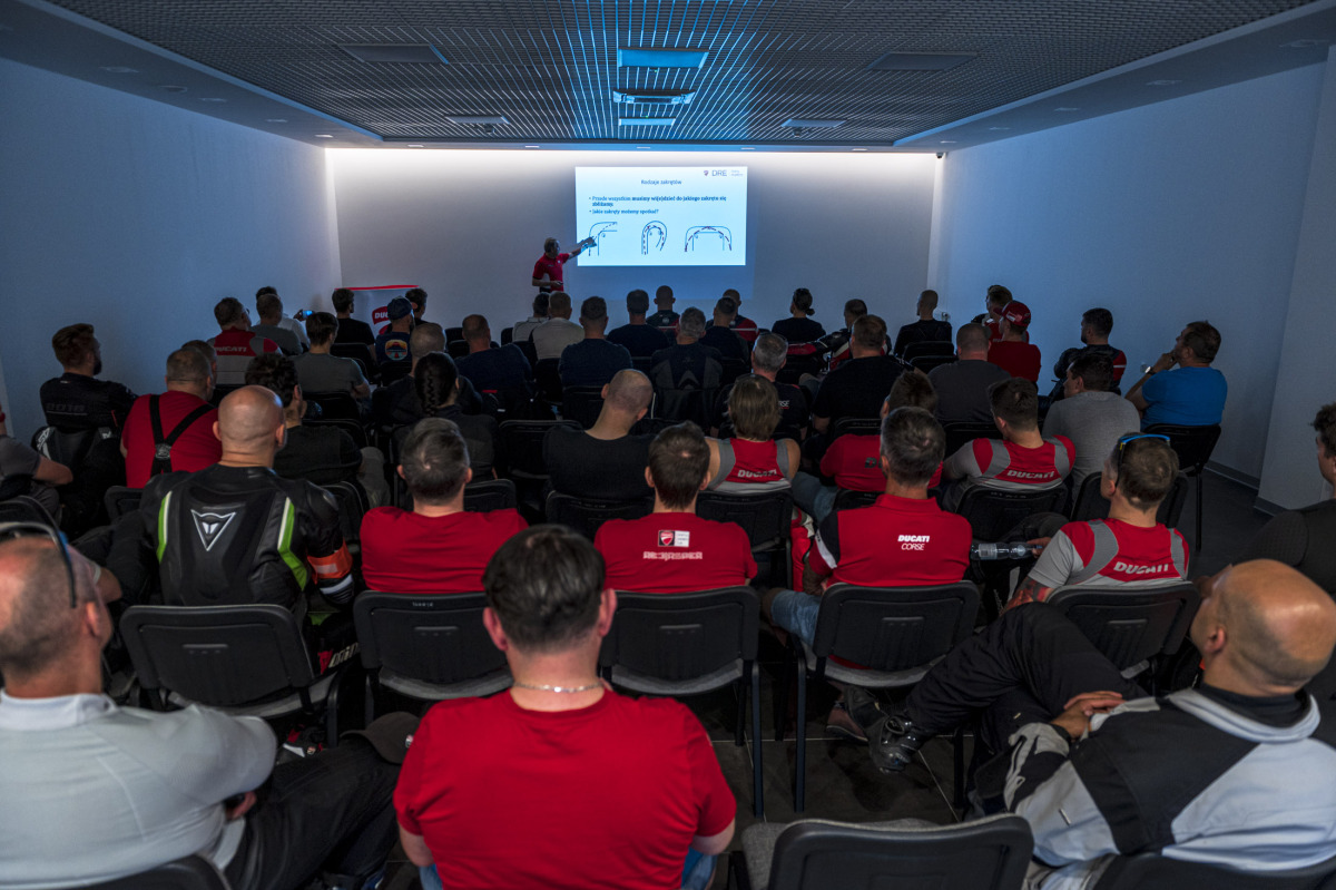 Partnerem szkolenia Ducati Riding Experience Road Academy był polski oddział firmy Pirelli. Włoski producent opon obchodzi w tym roku 150-lecie działalności, a przez większość tego czasu ściśle współpracuje z Ducati w doborze najlepszych opon do wyścigowych i drogowych modeli. Eksperci Pirelli Polska obecni w padoku opowiadali uczestnikom o różnych mieszankach użytych w ich oponach, a także doradzali w doborze prawidłowego ciśnienia przed wyjazdem na kolejną sesję treningową.