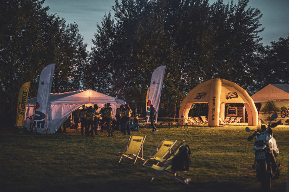 Kolejnymi atrakcjami imprezy był ekscytujący konkurs z nagrodami Scramblera, a także możliwość testowania na torze motocrossowym trzech egzemplarzy Ducati DesertX. Dla tych, którzy mieli ochotę "polatać" nieco wyżej, razem z ekipą GearUP! stworzyliśmy stoisko, na którym można było spełnić swoje lotnicze marzenia i wcielić się w rolę pilota na symulatorze lotu z goglami VR. Po zmroku ogrzewaliśmy się przy ognisku i jeździliśmy samochodami terenowymi w naprawdę wymagającym terenie - na stromych podjazdach i zjazdach, w głębokich koleinach, a także na przerażająco pochyłych trawersach. Z fotela kierowcy przekonaliśmy się o niezwykłych zdolnościach offroadowych leciwych Nissanów.