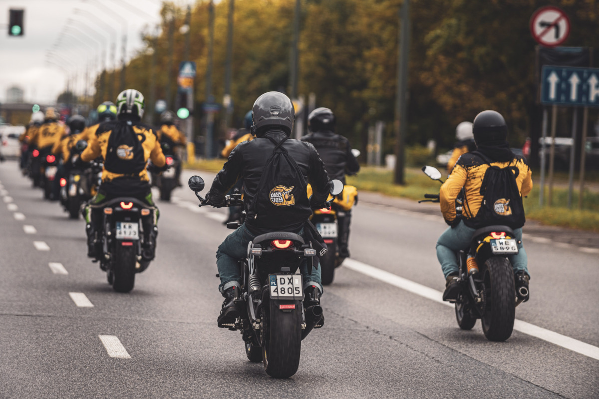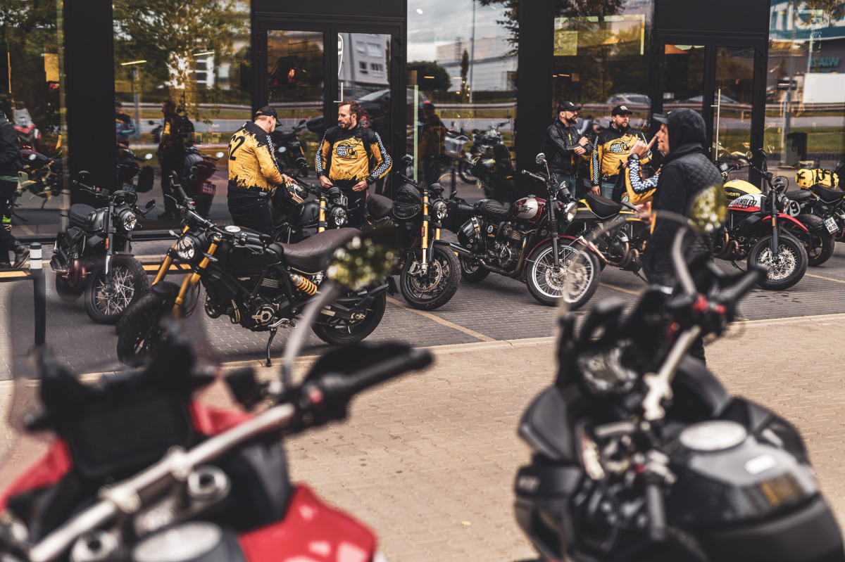W sobotni poranek 17 września 2022 roku, w salonie Ducati Liberty Motors w Piasecznie zebrała się zgrana ekipa, która uczestniczyła w zeszłorocznym wydarzeniu Scrambler Yellow Day, a także nowi właściciele Scramblerów Ducati. Parking wypełniał się motocyklami, a my poznawaliśmy się pijąc kawę. Każdy z uczestników otrzymał koszulkę, której wzór zaprojektowany został specjalnie na to wydarzenie. Widniejący na plecach numer 62 jest oczywistym nawiązaniem do roku 1962, czyli najważniejszej daty w historii Scramblera. W spójnych strojach udało się nam utworzyć żółtą kolumnę, która zachwycała podczas przejazdu przez Warszawę. Parada była naszym sposobem na uczczenie sześćdziesięciolecia Scramblera.