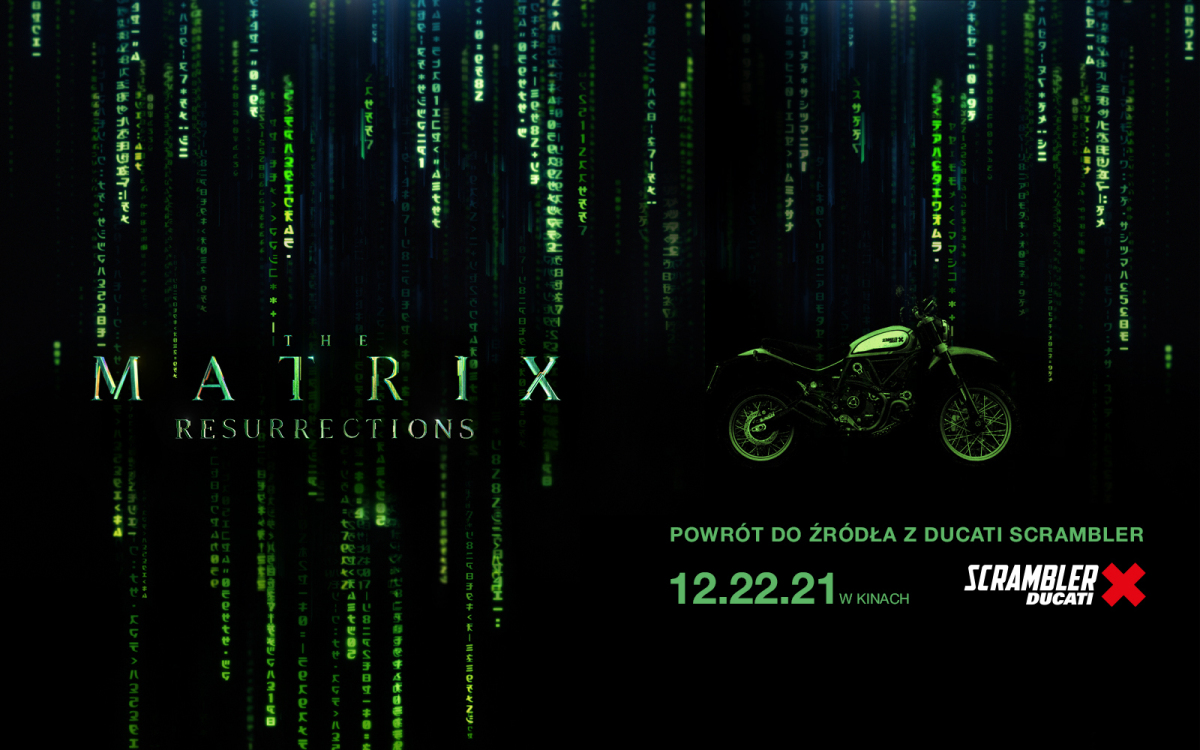 Ducati po raz pierwszy w oryginalnej trylogii Matrix pojawiło się w 2003 roku, w zapierających dech w piersiach scenach pościgu, który przeszedł do historii kinematografii. W nowym filmie występuje zmodyfikowany Ducati Scrambler. Ponownie poprowadzi go Trinity, a jej pasażerem jest nikt inny jak Neo, ubrany w swój charakterystyczny, długi płaszcz.