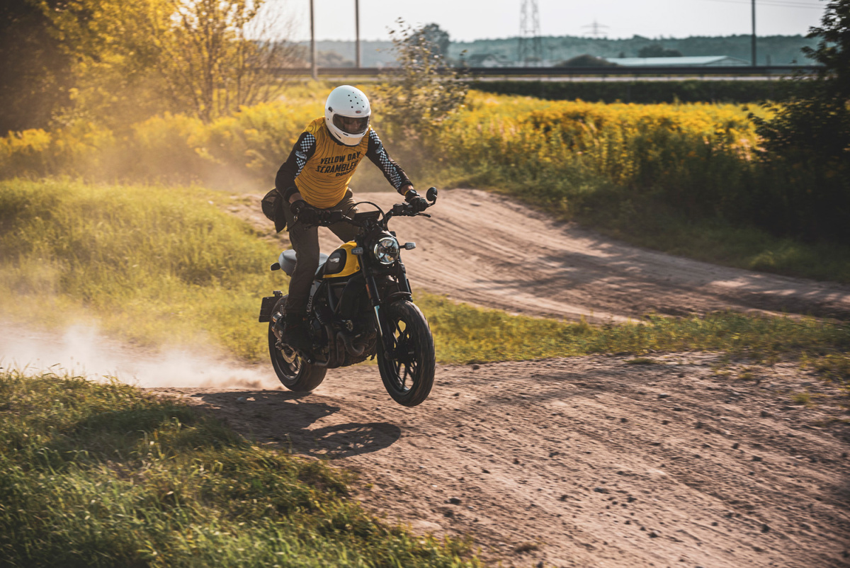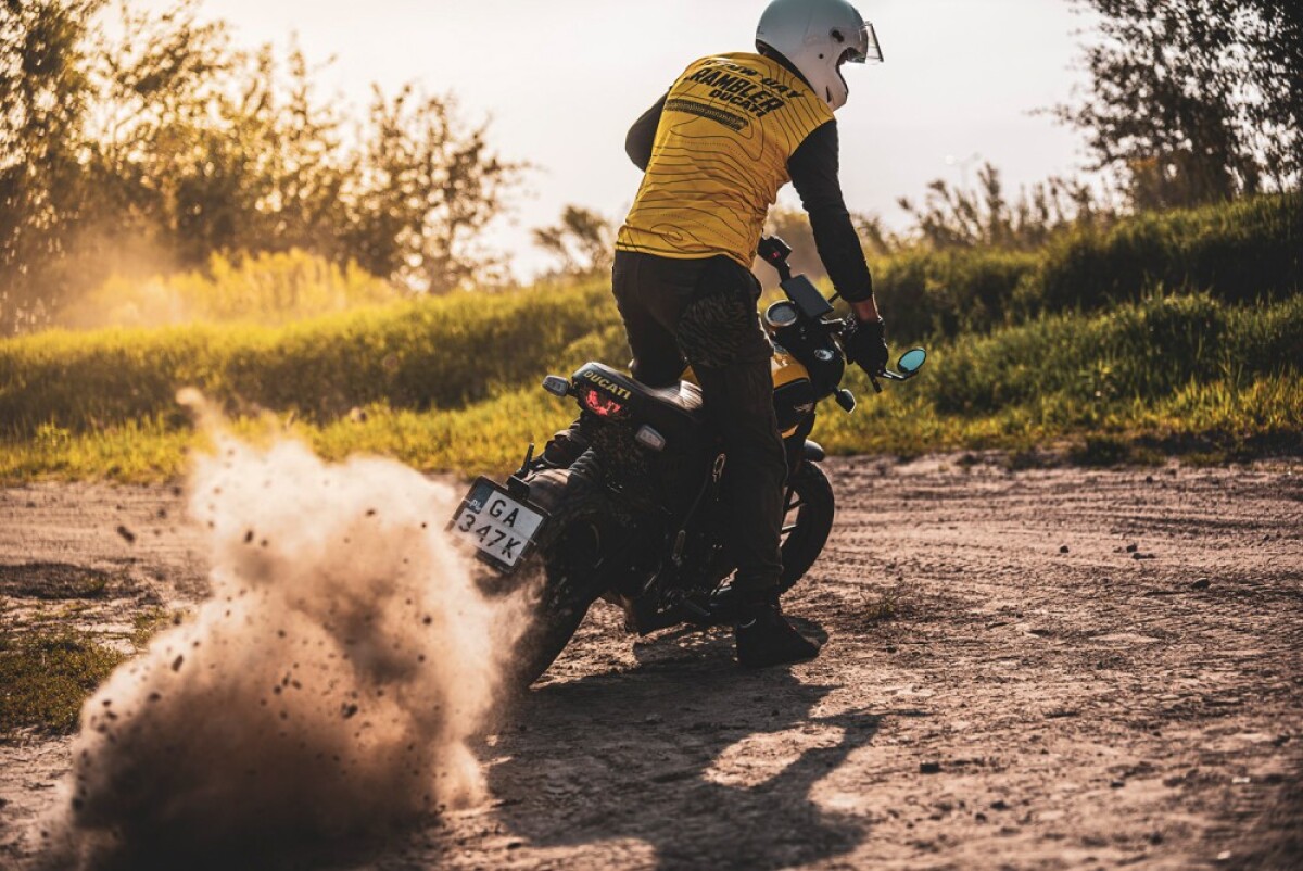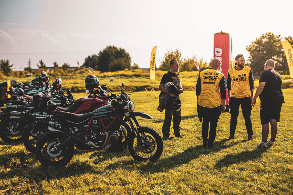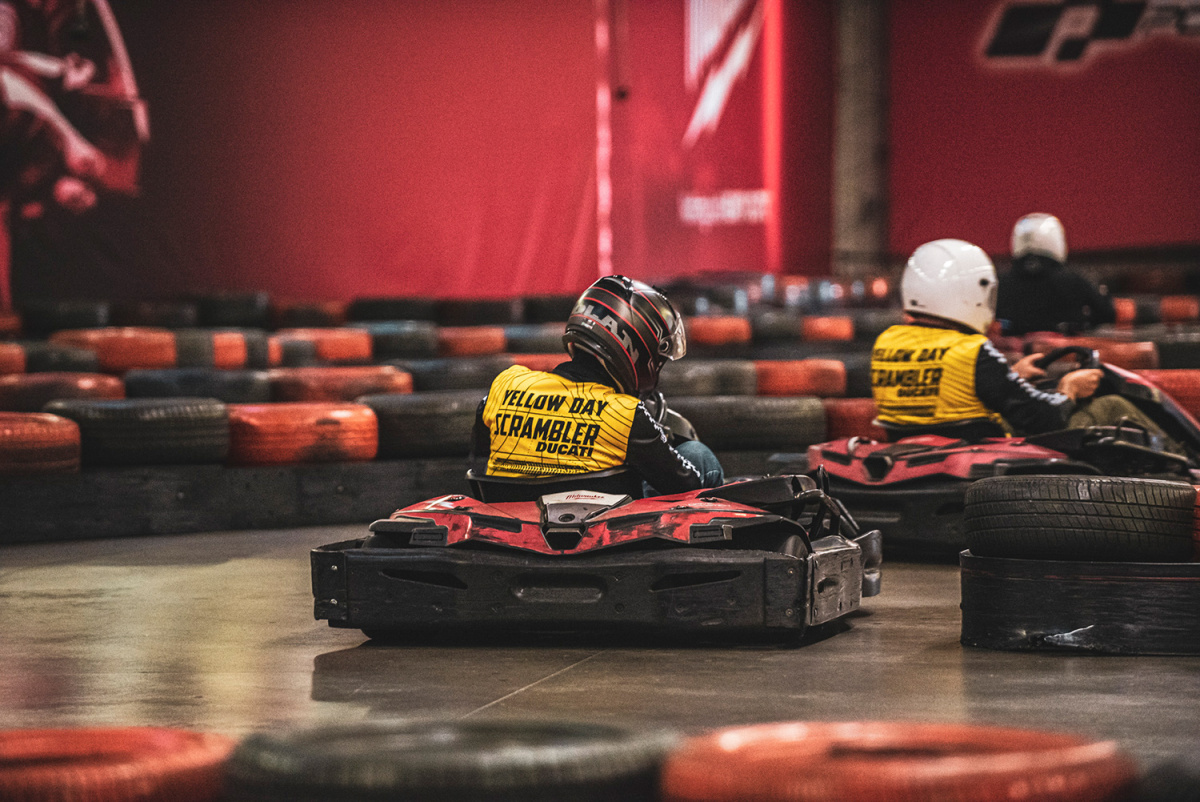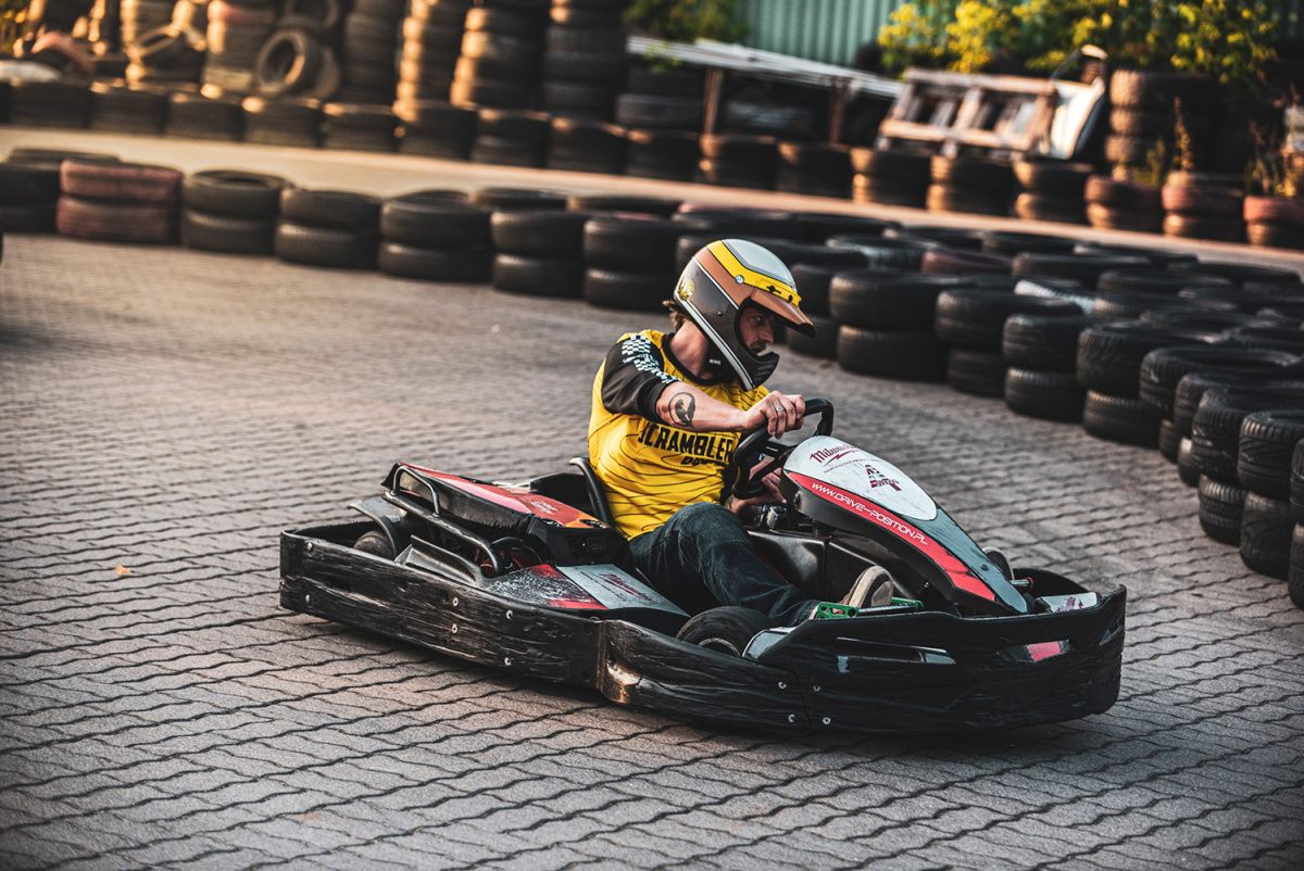 Najciekawsze atrakcje podczas Ducati Scrambler Yellow Day czekały na nas w ośrodku Drive Position w Sękocinie Starym, czyli Scramblerowym "Land of Joy". Podwarszawski obiekt był celem naszej wyprawy, na którym zaplanowaliśmy wiele różnych aktywności. Na motocrossowym torze, pod okiem instruktora mogliśmy dać upust swoim emocjom i sprawdzić motocykle w piachu, na ostrych nawrotach i na wymagających hopkach. Uczestnicy Yellow Day udowodnili, że wiedzą co znaczy "polatać Scramblerem" - dosłownie! Nie brakowało urwanych tablic rejestracyjnych i pogiętych dźwigni zmiany biegów, ale na szczęście obeszło się bez żadnych poważnych przygód. Zanim fantazja poniosłaby kogoś odrobinę za bardzo zmieniliśmy atrakcje na czterokołowe. Podczas pucharu gokartowego w uczestnikach znów obudził się duch rywalizacji, pojedynki były bardzo zaciekłe, a trzy sesje przejazdów zakończyliśmy rozdaniem nagród dla najszybszych osób.