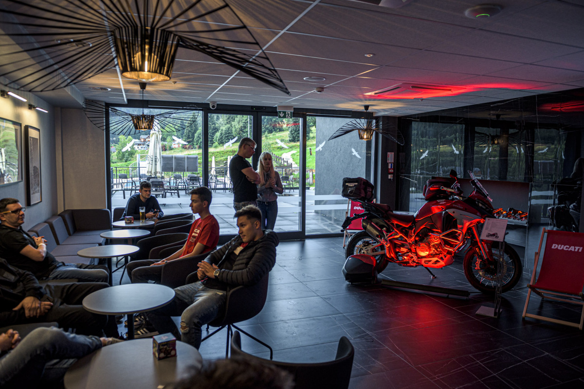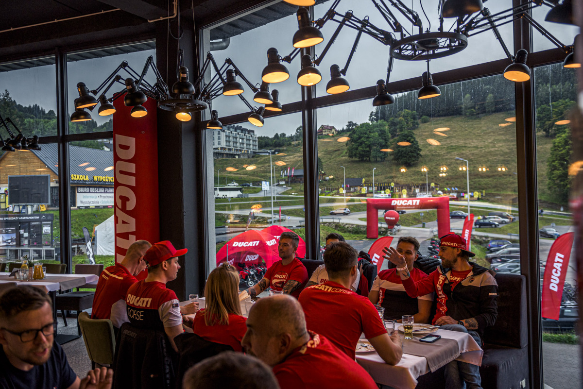 Wieczorem, po wszystkich emocjach tego dnia zintegrowaliśmy się przy grillowej kolacji w pobliskiej karczmie. Następnie przyszedł czas na relaks przy drinku i wymienienie się doświadczeniami, spostrzeżeniami na temat Multistrady V4 i motocyklowymi planami na przyszłość. Goście alternatywnie mogli skorzystać też z hotelowego basenu, aby zregenerować się po wymagającym dniu. W niedzielę po śniadaniu zaplanowaliśmy wjazd kolejką na szczyt Czarnej Góry, a następnie uczestnicy w świetnych humorach rozjechali się do domów we własnych kierunkach. Po evencie zebraliśmy wiele pozytywnych opinii na jego temat, a klienci docenili między innymi liczebności floty testowej, warunki noclegowe, piękne trasy, a także niespodzianki, które przygotowaliśmy dla uczestników.