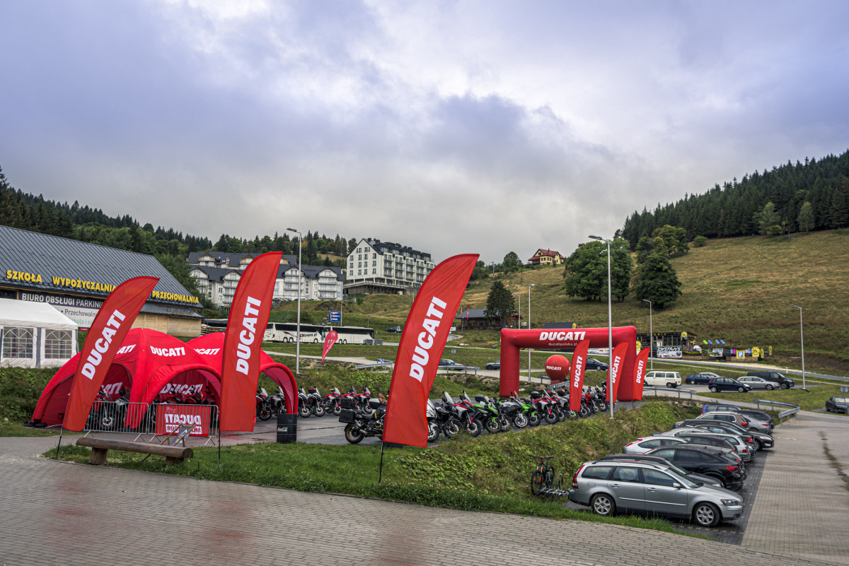 W piątkowe popołudnie 17 września wraz z ekipą motoRRaid w Hotelu Czarna Perła w Siennej powitaliśmy uczestników Multistrada V4 Experience, którzy przyjechali swoimi motocyklami z różnych regionów Polski. W miasteczku Ducati, stworzonym na parkingu przed hotelem, na gości czekały już Multistrady V4 w różnych wersjach i konfiguracjach, które mieli testować kolejnego dnia. Deszczowa aura niestety nie napawała optymizmem i wiedzieliśmy już, że na słoneczny weekend nie ma co liczyć. Czuć było jednak nadchodzące emocje.