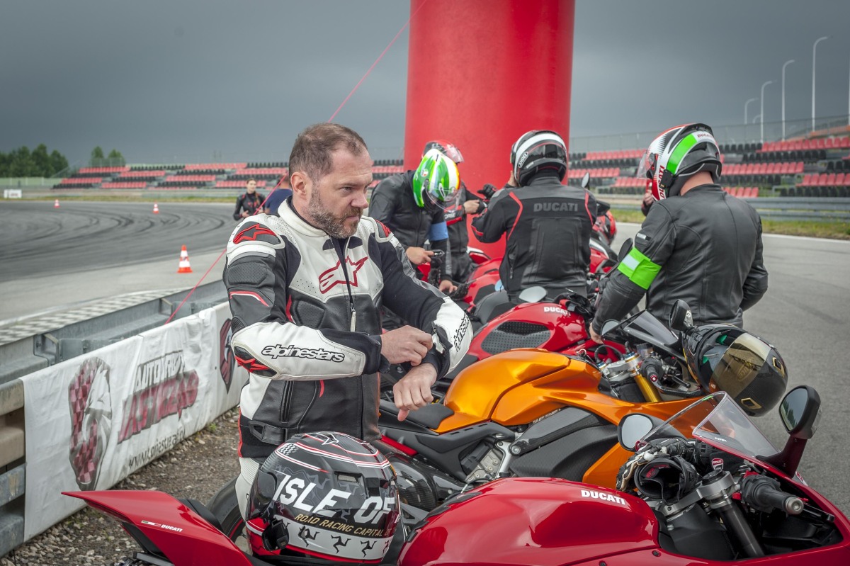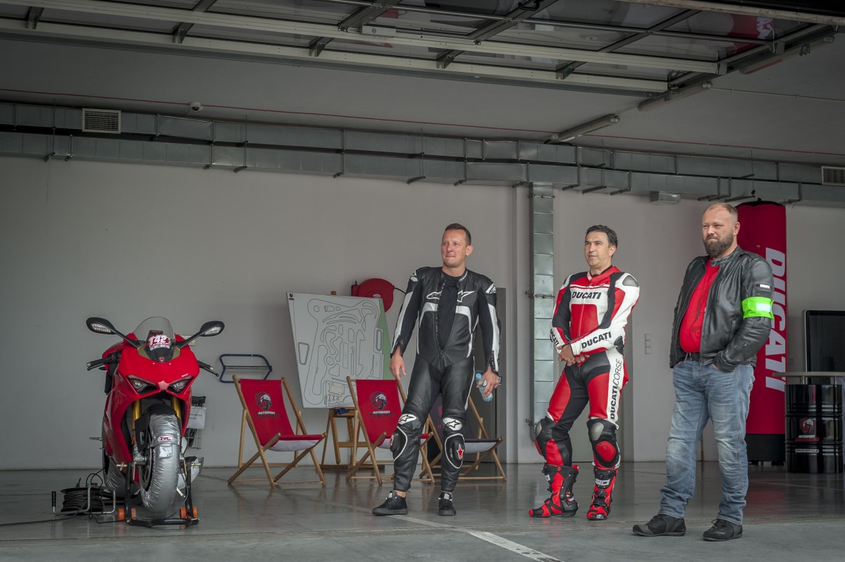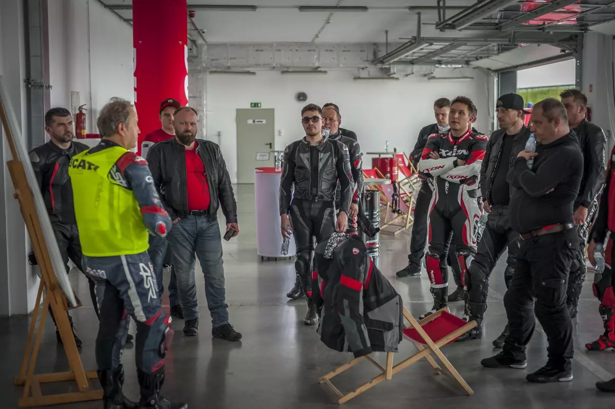 Już od rana na Torze Jastrząb pod Radomiem zaczęło robić się czerwono i głośno. Głodni jazdy właściciele Ducati zostawili w padoku swoje maszyny, aby przed wjazdem na tor odbyć część teoretyczną szkolenia, którą poprowadził Janusz Czaja. Po krótkim briefingu przyszedł czas na praktykę, na którą tego dnia wszyscy najbardziej czekali.