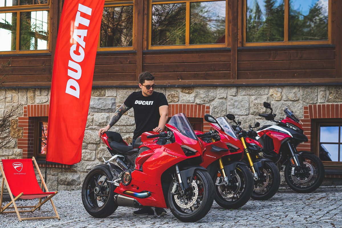 Na przybywających w akompaniamencie dźwięku potężnych silników gości imprezy czekaliśmy z naszymi najbardziej zaawansowanymi technologicznie i najmocniejszymi motocyklami z oferty. W hotelu wyeksponowaliśmy ostatni dostępny w Polsce egzemplarz Panigale V4 R, a wejście do budynku pięknie zdobiły Multistrada V4 S, Streetfighter V4 S, Panigale V4 S, a także doposażone wieloma akcesoriami Panigale V2. Każdy z uczestników Ferrari Corsa Baltica otrzymał indywidualne zaproszenie na jazdę testową dowolnie wybranym modelem z dostępnej floty ponad 60 motocykli demonstracyjnych. Miłośnicy ekstrawaganckiego stylu, motoryzacyjnych emocji i zabawy w najbardziej ekskluzywnym wydaniu z podekscytowaniem poznawali parametry i nowinki technologiczne w motocyklach Ducati.