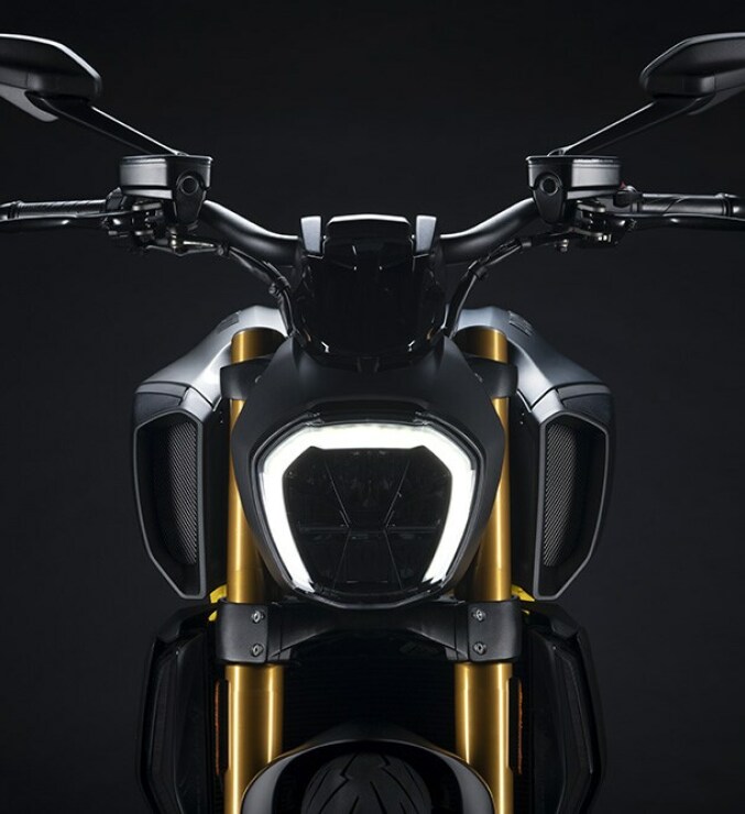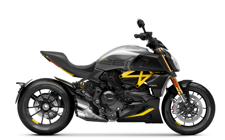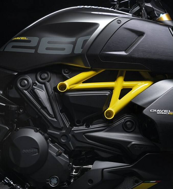 Charakter przodu motocykla określa reflektor LED z charakterystycznym światłem do jazdy dziennej w kształcie odwróconej podkowy. Kolejny ciekawy i charakterystyczny dla tego modelu zabieg, to umieszczenie przednich kierunkowskazów w bocznych osłonach chłodnicy. Silnik i rama również odgrywają ważną rolę stylistyczną dzięki swoim niepowtarzalnym, dostojnym konturom. Siła wizerunku Diavela 1260 S to znakomicie dobrane szczegóły, które odkrywamy obchodząc motocykl dookoła. Dostępne dla wersji S wzory malowania to Sandstone Grey z czarną ramą i kołami, Thrilling Black & Dark Stealth z czerwoną ramą i czarnymi obręczami, a także Ducati Red z białymi grafikami, czerwoną ramą i czarnymi felgami. Kolejny dodatek podnoszący walory wizualne to siodło o specjalnym wzorze wykończenia.