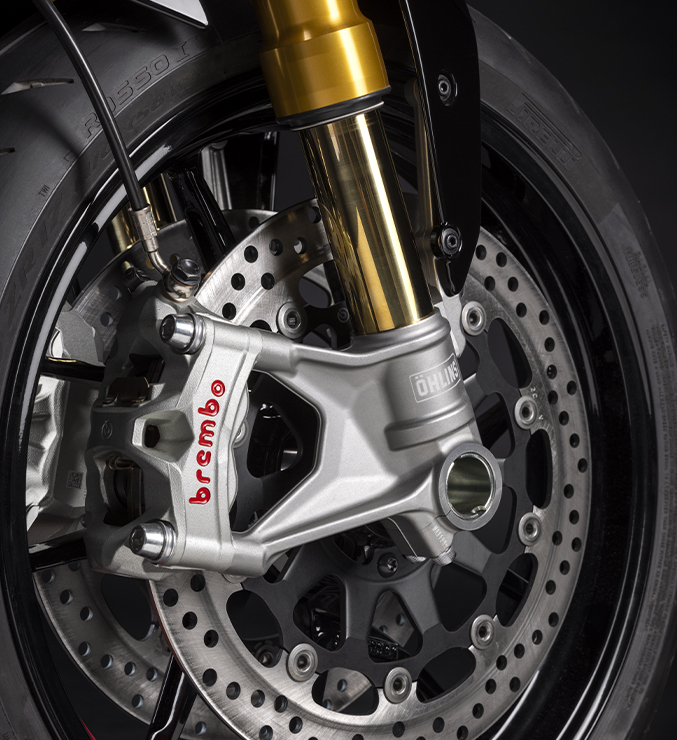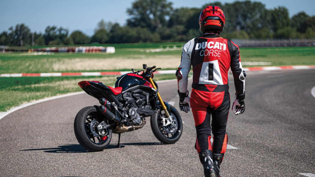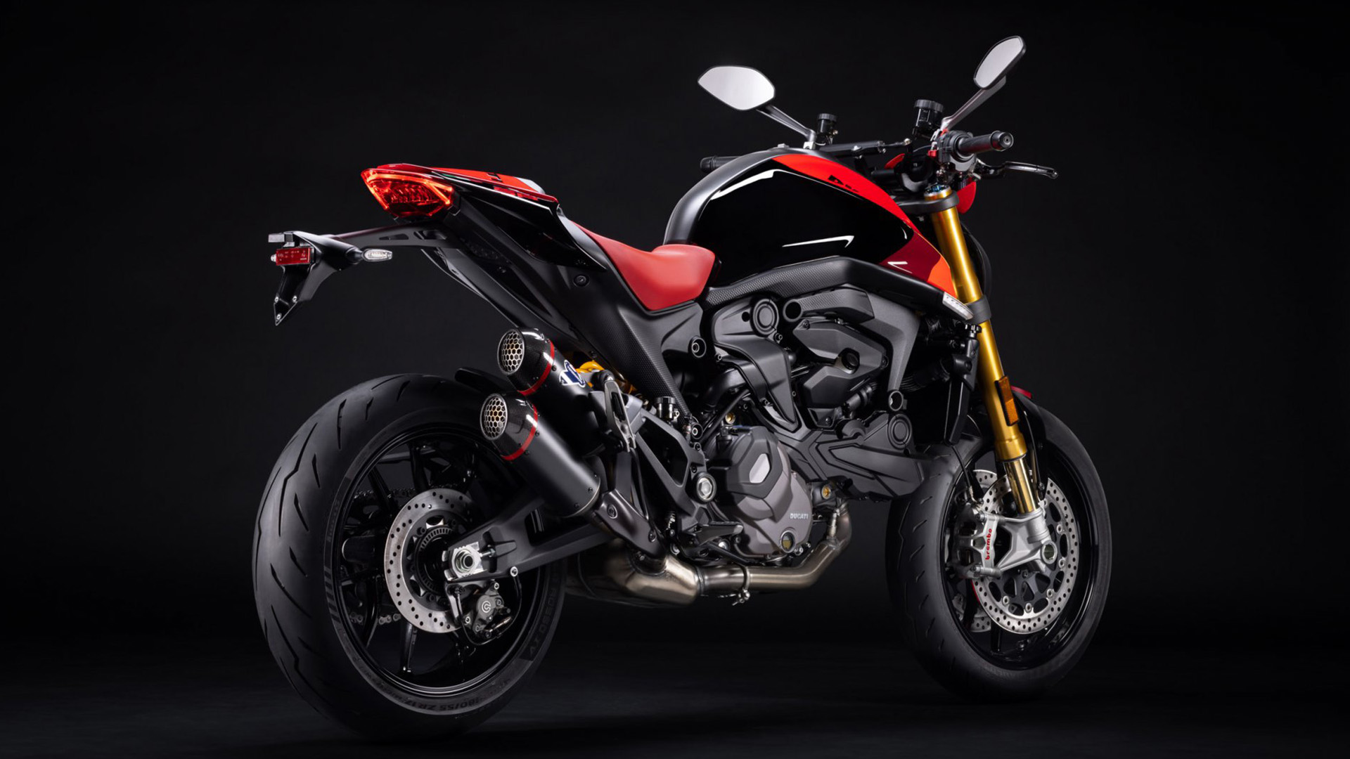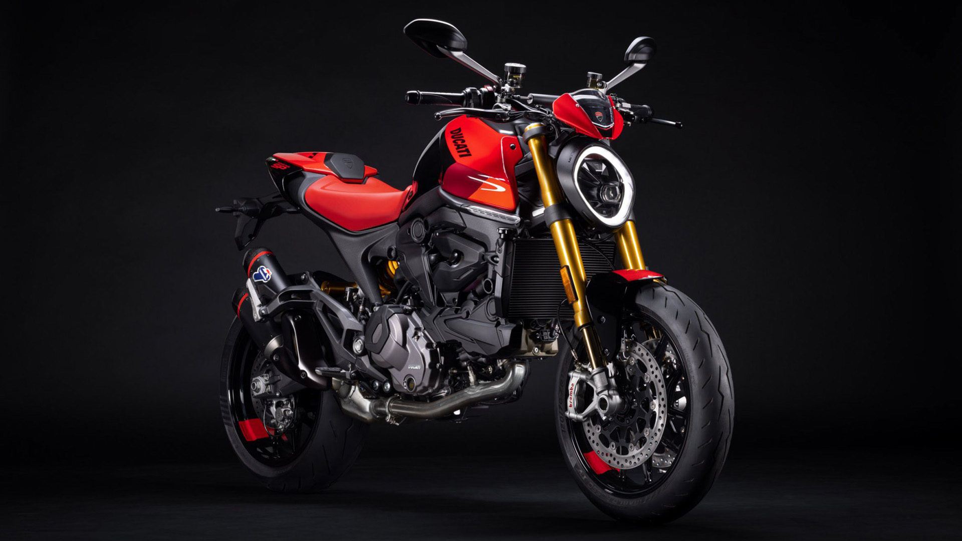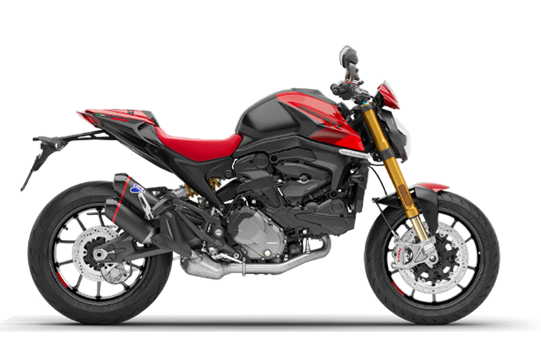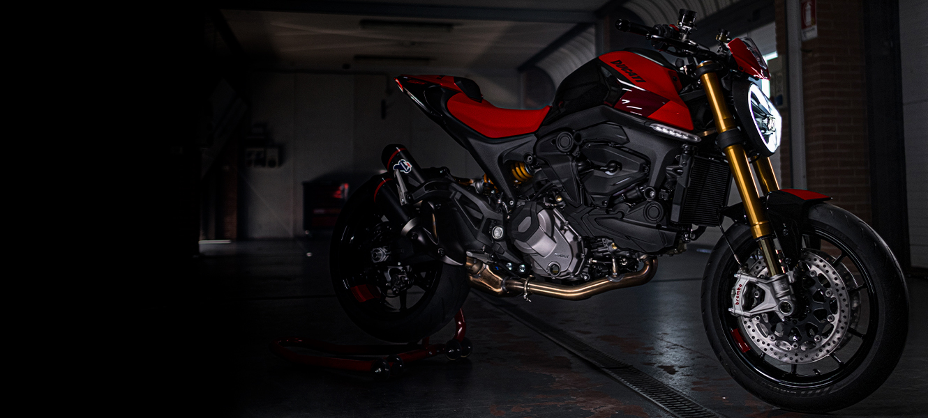 Charakter Monstera SP podkreśla malowanie w kolorach, które występują też na Desmosedici GP zespołu wyścigowego Ducati Lenovo Team, a także tłumik Termignoni oraz złote golenie widelca Öhlins NIX30.