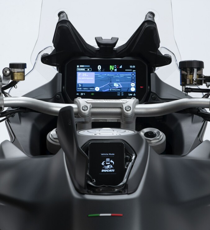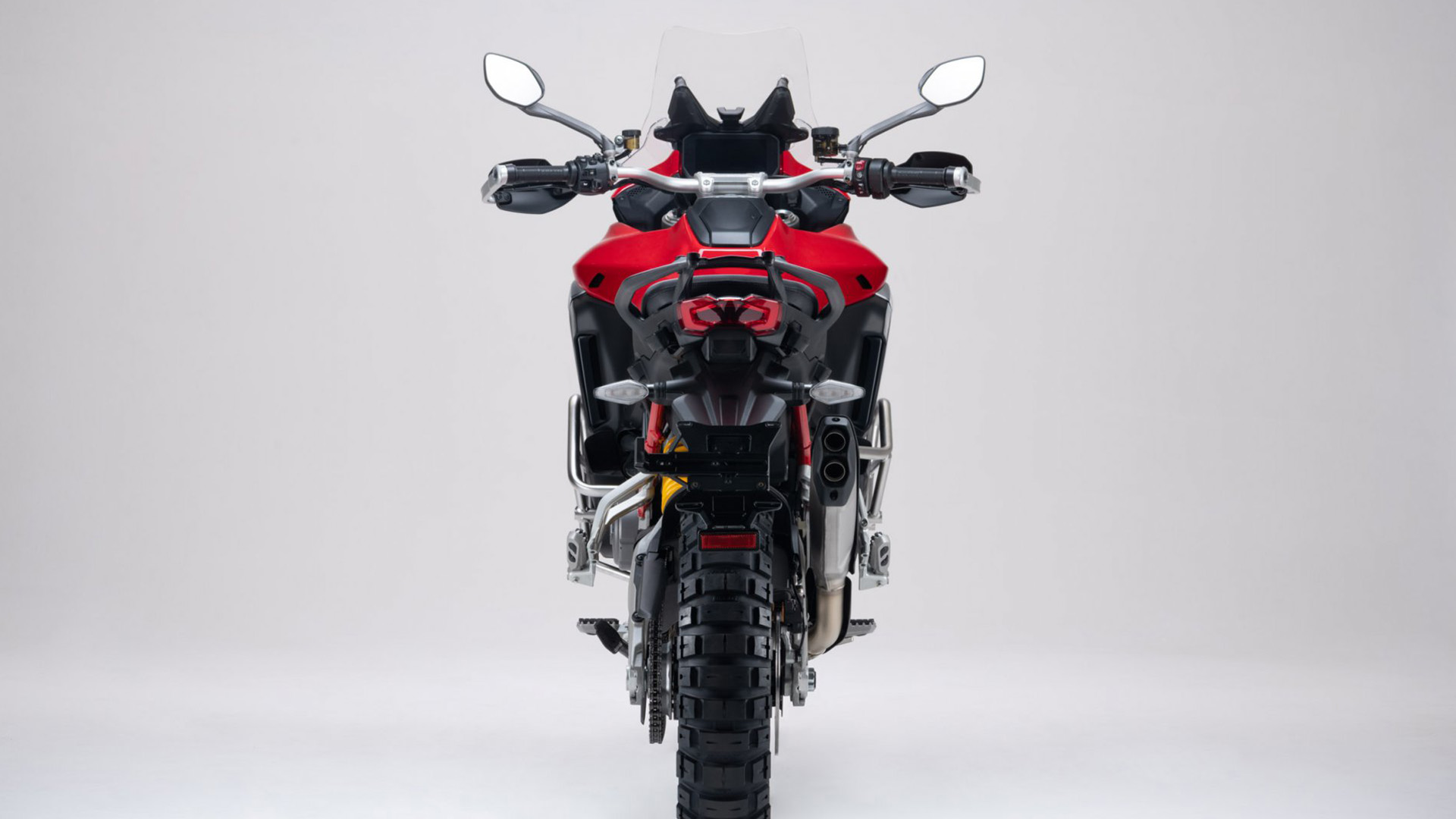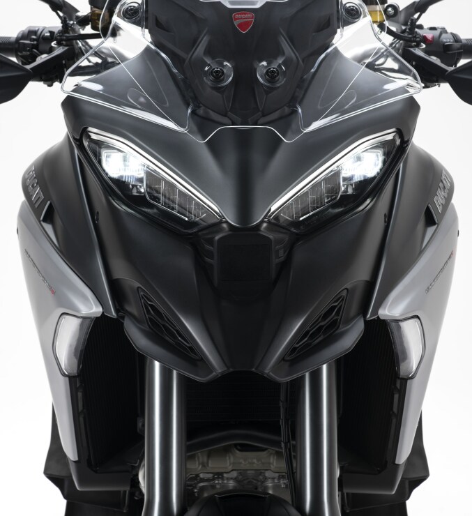 Projekt Multistrady V4 S cechuje się niezwykłą funkcjonalnością. Jest solidny i wytrzymały, a jednocześnie wyrafinowany i niezwykle estetyczny. Projektanci Ducati wypracowali dobre proporcje i kompaktowość nadwozia w rozstawie osi - idealne połączenie formy i funkcji. Da się to zauważyć w muskularnych gabarytach przedniej części nadwozia z 22-litrowym zbiornikiem paliwa, w połączeniu ze smukłym tyłem, który umożliwia optymalną pozycję nawet podczas jazdy na stojąco na odcinkach terenowych.