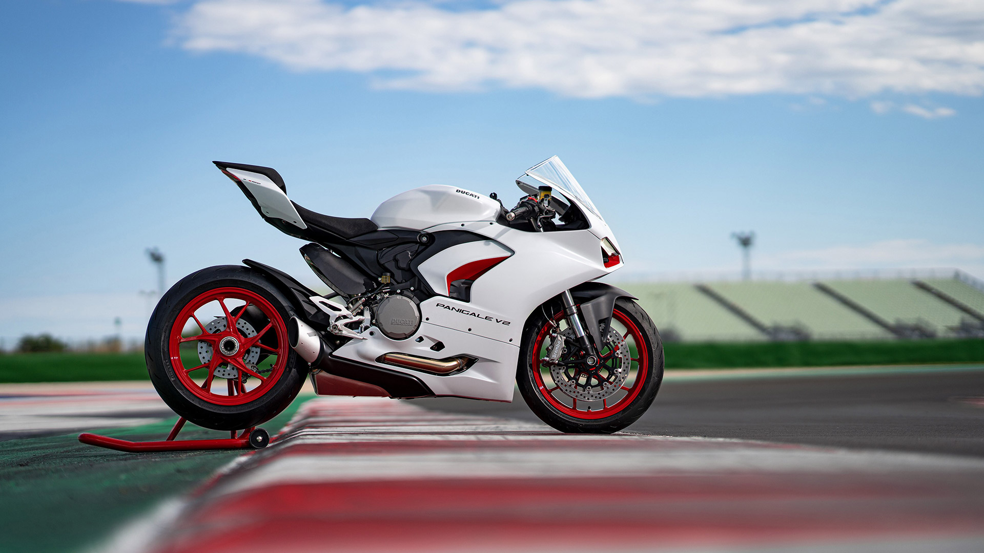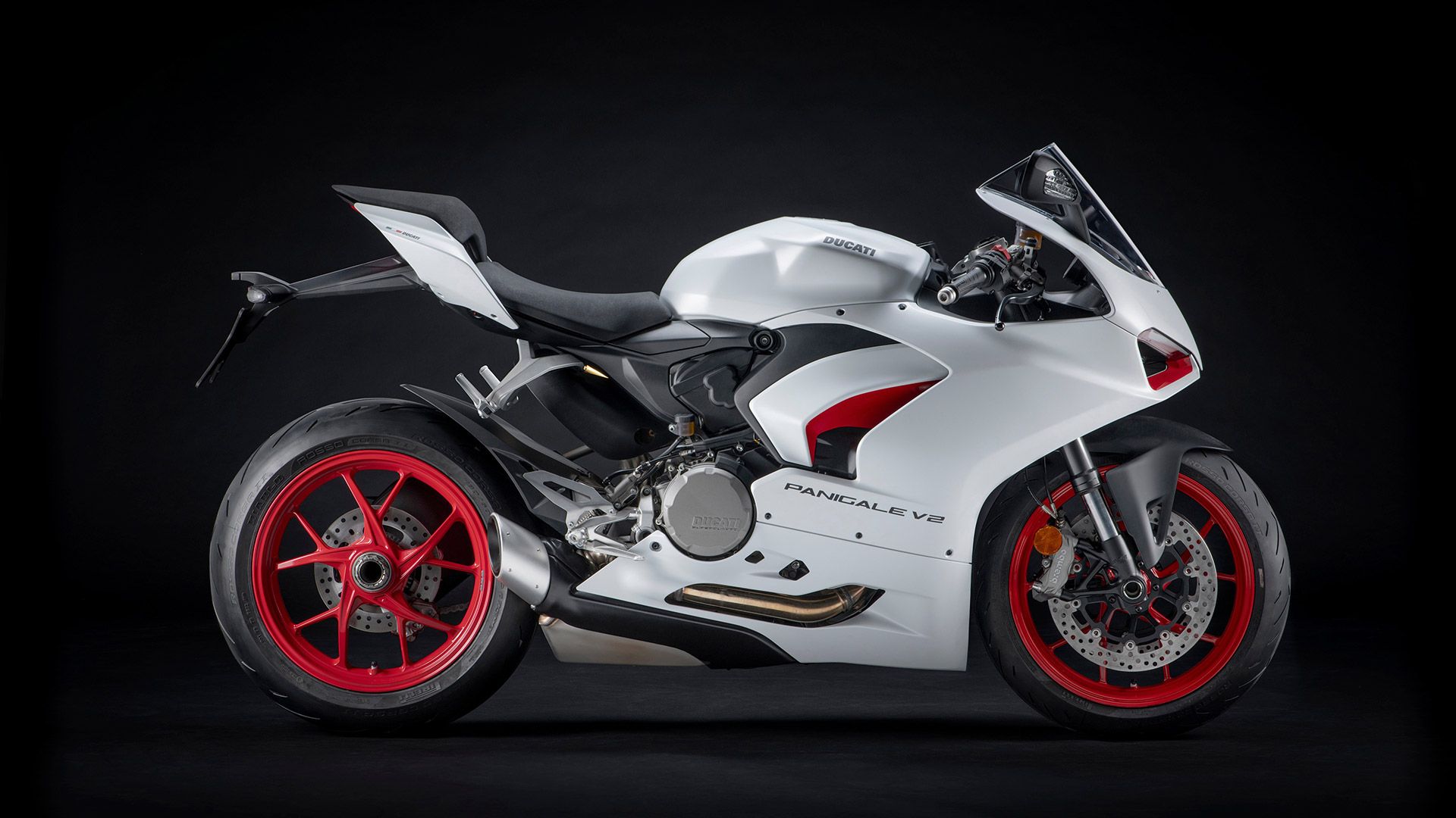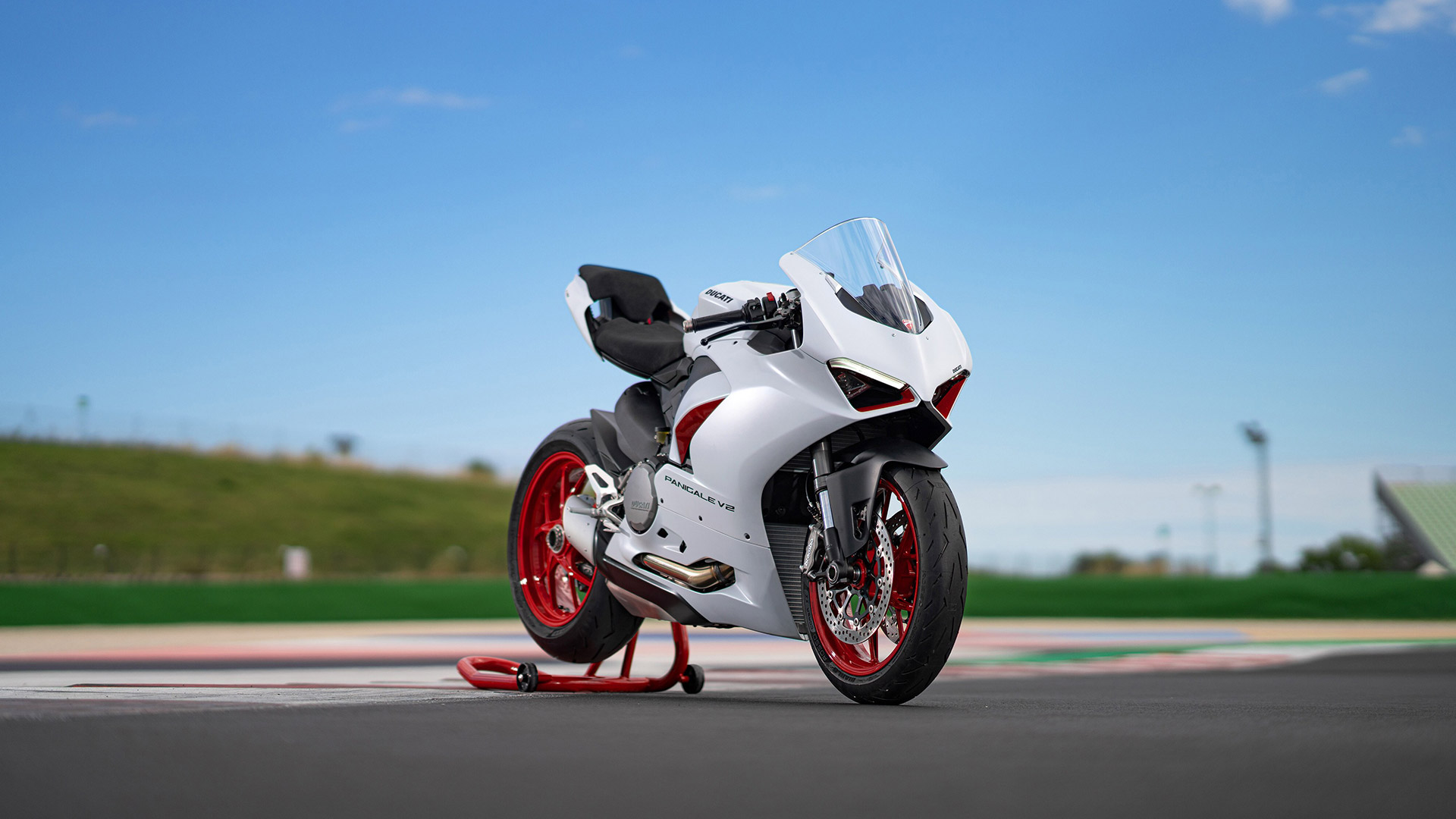 Nowe Panigale V2 posiada jednostronny wahacz, będący znakiem rozpoznawczych motocykli sportowych Ducati z najwyższej półki. Smukłe owiewki okrywają silnik Superquadro V2, dzięki czemu motocykl jest zauważanie węższy i mniej onieśmielający, niż bliźniaczo wyglądający Panigale V4.