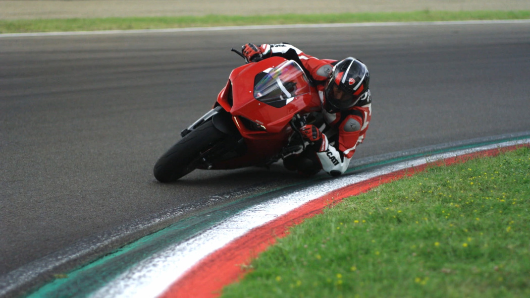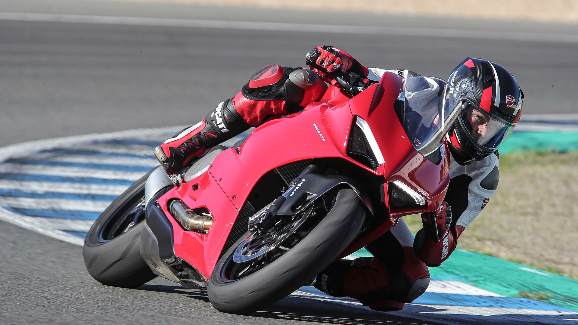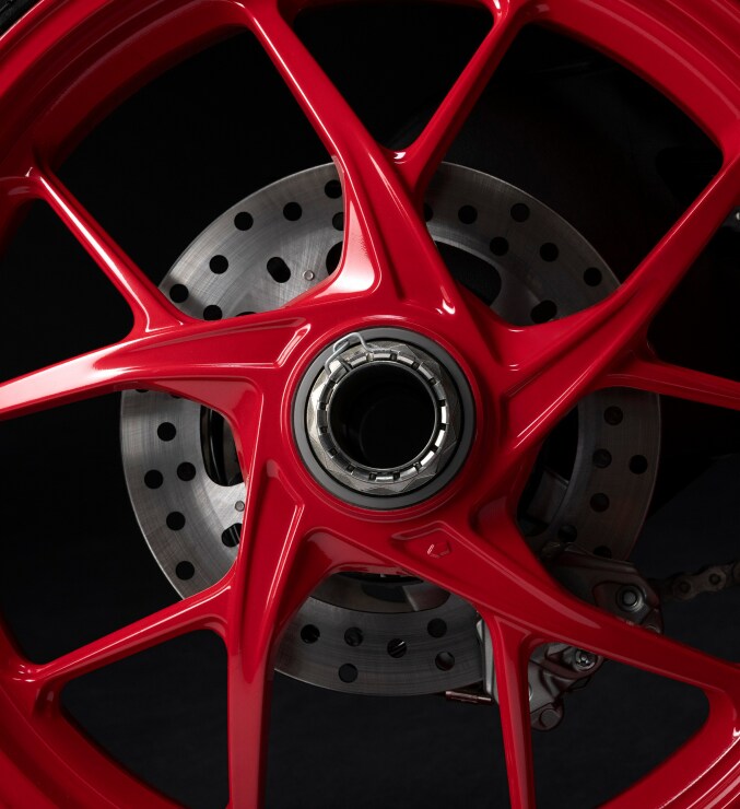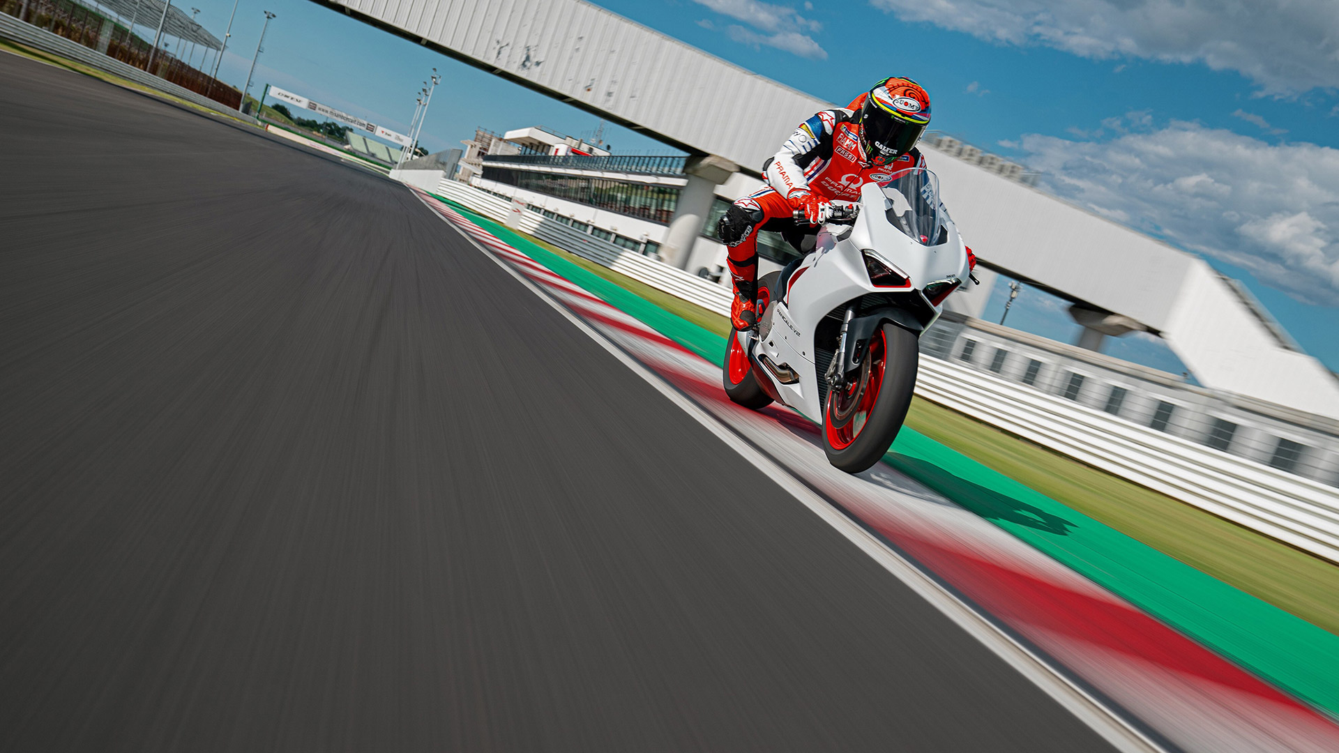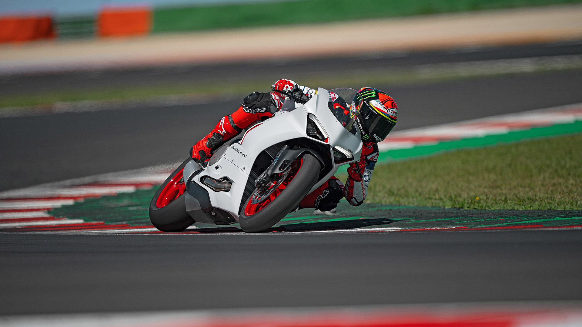 Nowe Panigale V2 posiada jednostronny wahacz, będący znakiem rozpoznawczych motocykli sportowych Ducati z najwyższej półki. Smukłe owiewki okrywają silnik Superquadro V2, dzięki czemu motocykl jest zauważanie węższy i mniej onieśmielający, niż bliźniaczo wyglądający Panigale V4.
