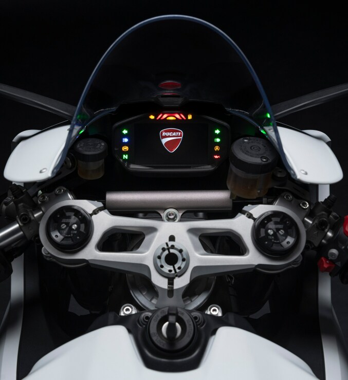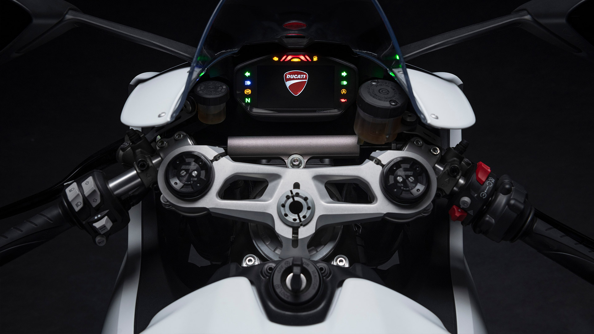W porównaniu do 959 Panigale, nowa ergonomia Panigale V2 zwiększa poziom komfortu. Nowa kanapa gwarantuje więcej miejsca wzdłuż motocykla, a nowe wypełnienie poprawia wygodę jazdy. Umiejscowienie podnóżków pozostało bez zmian.