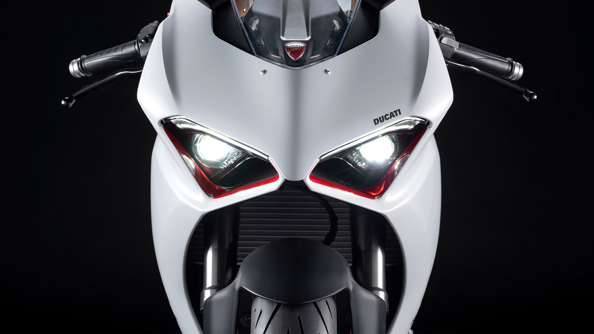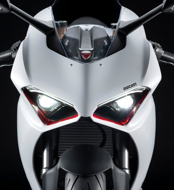 Przednią część motocykla dominują wysokowydajne i pięknie zaprojektowane, dwa wloty powietrza, wewnątrz których ukrywają się dwa reflektory LED. Światło do jazdy dziennej dodatkowo oświetla krawędzie wlotów, tworząc niepowtarzalny efekt.
