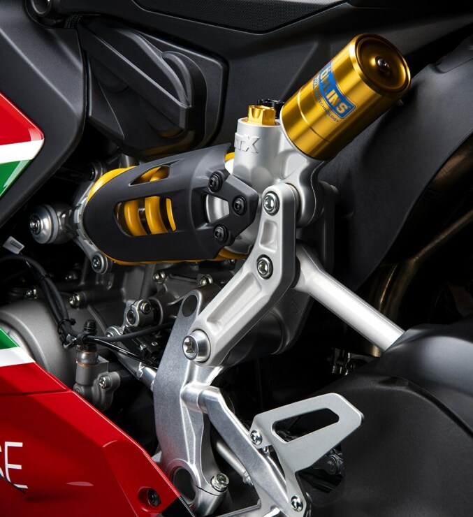 Wyposażenie uzupełniają sportowe manetki, osłona tłumika z włókna węglowego i tytanu oraz siedzenie kierowcy wykonane poprzez połączenie dwóch różnych materiałów technicznych z podwójnymi, czerwonymi szwami. Na siedzisku wyhaftowany jest numer 21 Troya, który wraz z zielonymi i czerwonymi pasami tworzy włoską flagę. Motocykl jest również wyposażony w specjalny system hamulcowy oraz inne, unikalne elementy techniczne.