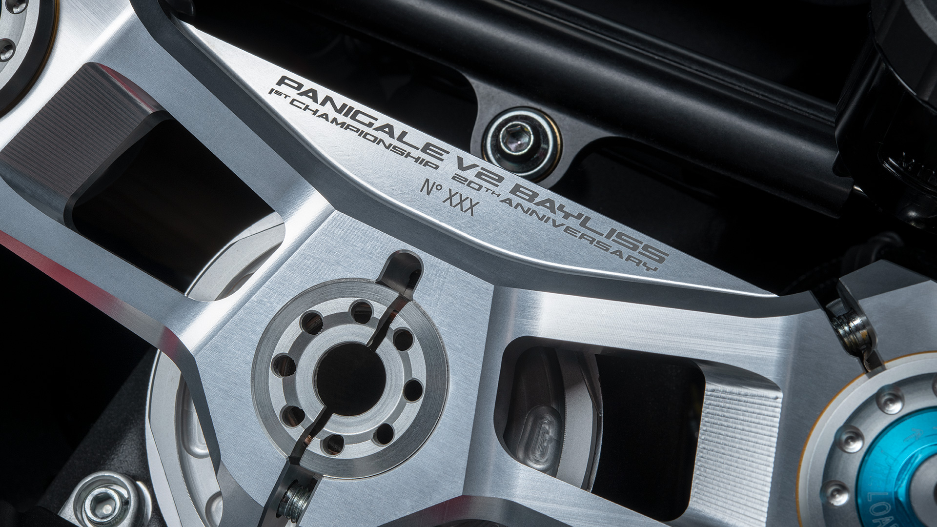 W porównaniu z wersją standardową, Panigale V2 Bayliss 1st Championship 20th Anniversary jest o 3 kg lżejszy, dzięki zastosowaniu akumulatora litowo-jonowego i wybraniu konfiguracji pojedynczego siedzenia, która wyraźnie nawiązuje do wyglądu motocykla wyścigowego.