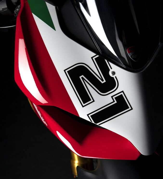 Stworzona na bazie Panigale V2 wersja "Bayliss 1st Championship 20th Anniversary" charakteryzuje się specjalnym designem. Szata graficzna motocykla inspirowana jest modelem 996 R, który w sezonie 2001 poprowadził Baylissa do zdobycia jego pierwszego tytułu mistrza świata. Czerwień Ducati jest sercem kolorystyki motocykla. Łączy się ona z zielonymi i białymi akcentami w hołdzie dla włoskiego pochodzenia producenta z Bolonii. Legendarny numer wyścigowy Troya Baylissa #21 oraz logo Shell po bokach i z przodu wizualnie wzmacniają związek z charakterem wyścigowym. Autograf Troya jest odwzorowany na zbiorniku paliwa, a na potrójnym zacisku aluminiowym umieszczono nazwę motocykla i numerację tego wyjątkowego modelu.