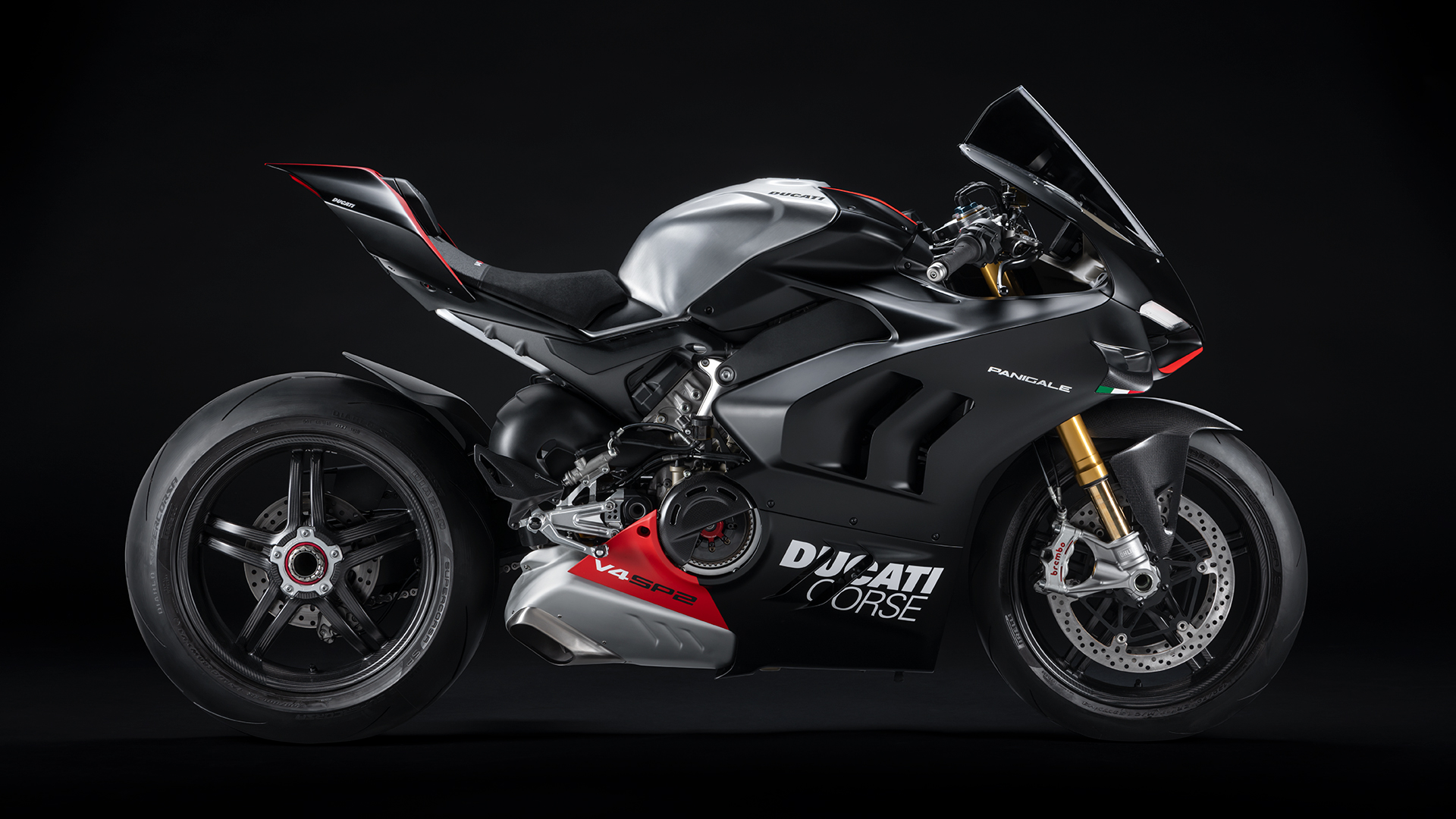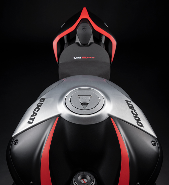 Panigale V4 SP2 charakteryzuje się malowaniem „Winter Test”, które inspirowane jest kolorem motocykli używanych w przedsezonowych testach mistrzostw MotoGP i WSBK. Matowa czerń owiewek kontrastuje z czerwonymi akcentami i szczotkowanym aluminium na zbiorniku, nadając motocyklowi prawdziwie rasowy wygląd. Karbonowe skrzydła ozdobione są motywem włoskiej flagi, która pojawia się również na oficjalnym modelu Panigale V4 R SBK. Każdy egzemplarz Panigale V4 SP2 ma swój unikalny numer wygrawerowany na półce amortyzatora, dzięki któremu każdy model jest wyjątkowy.