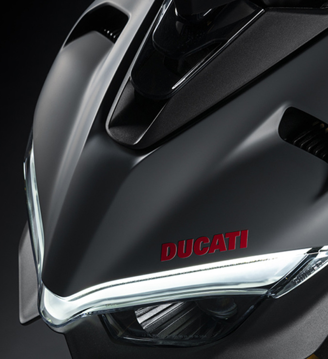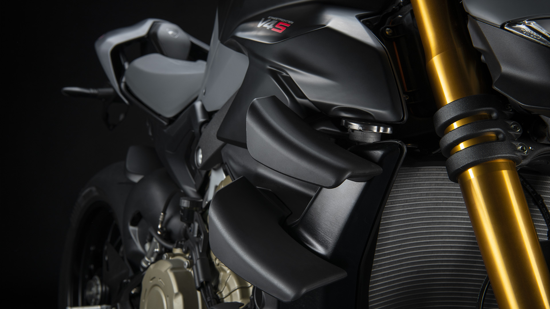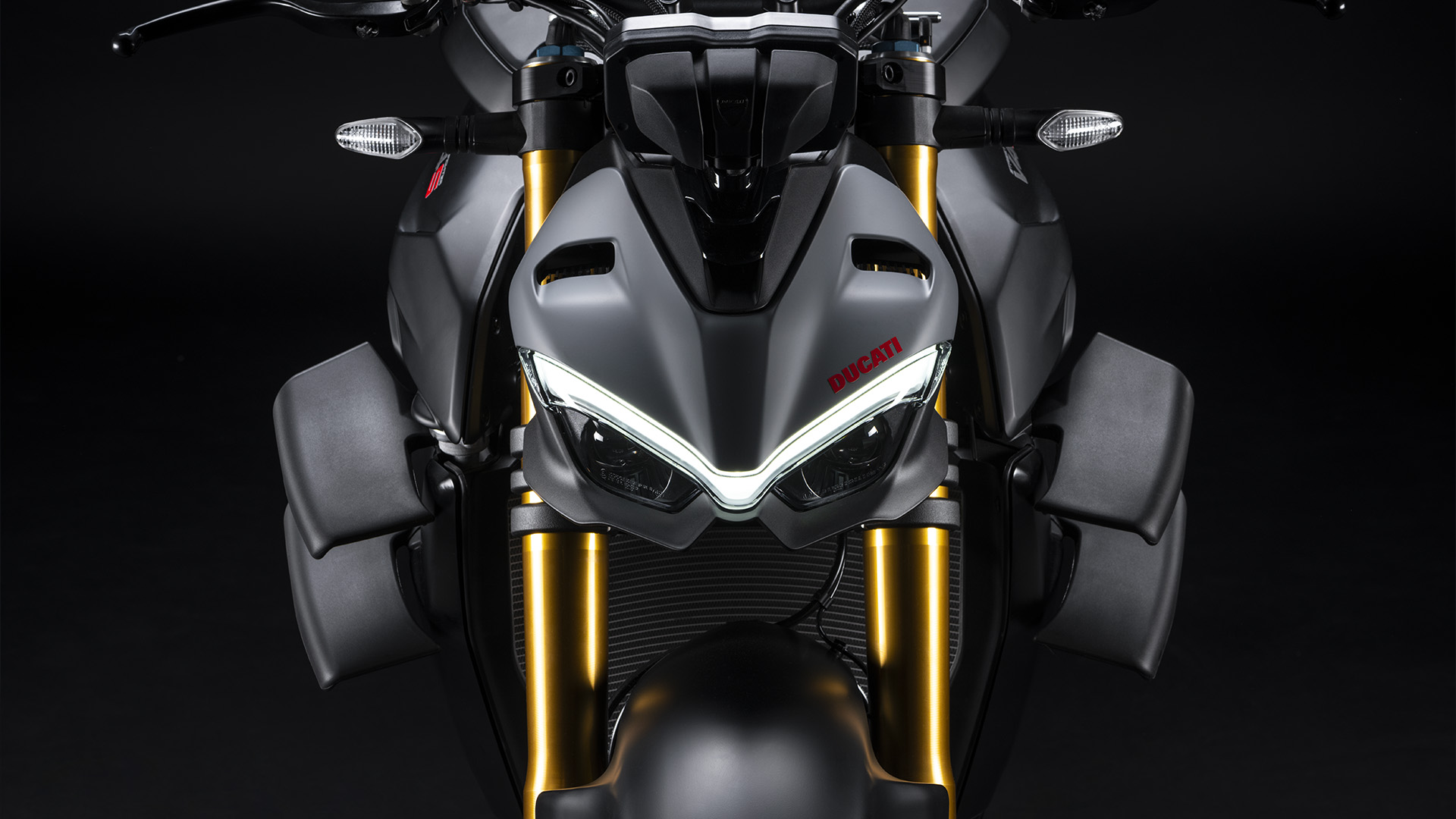 Design Streetfightera V4 jest bezpośredni i minimalistyczny, z przednią lampą LED w kształcie litery V, która przypomina Panigale V4. Niski, pochylony do przodu przód, który przedłuża mocne linie baku, nadaje Streetfighterowi V4 wyglądu drapieżnika.