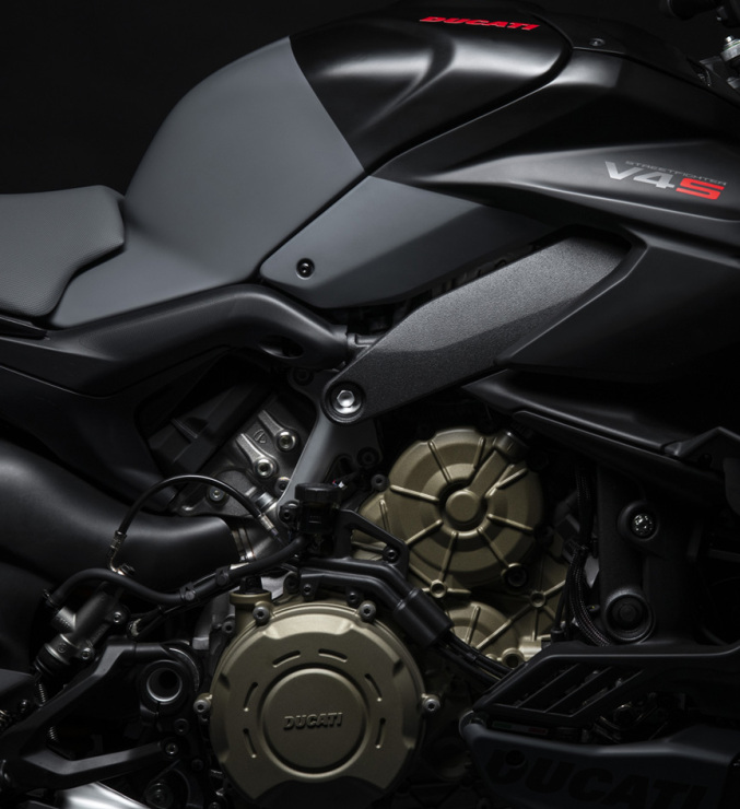 Zbiornik paliwa, o pojemności zwiększonej do 17 lirów, ma taki sam kształt jak w modelu Panigale V4 2022. Został przeprojektowany, aby zapewniać kierowcy lepszą pozycję podczas hamowania i pokonywania zakrętów. Nowa rama „Front Frame” i Desmosedici Stradale pozostają odsłonięte tworząc czystą, wyrafinowaną formę.