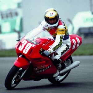 Marco Lucchinelli zostaje pierwszym w historii zwycięzcą wyścigu mistrzostw świata Superbike w Donington w roku 1988.