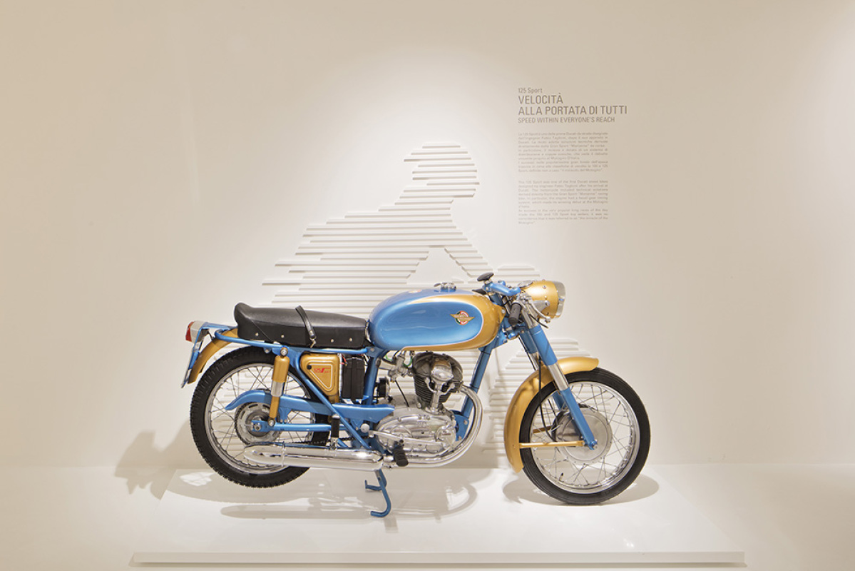 Muzeum Ducati, urządzone niedawno na nowo, posiada wydzieloną obszerną strefę, poświęconą motocyklom, które pomimo bycia standardowymi modelami produkcyjnymi, stały się prawdziwymi ikonami i zbudowały znany dziś wizerunek marki. Każdy z nich jest symbolem swojej epoki, zarówno w kontekście technologicznym, jak również stylistycznym, ekonomicznym czy nawet socjologicznym. Dwa pozostałe działy Muzeum prezentują imponującą historię sportową Ducati, z podziałem na prezentacje najbardziej znanych motocykli wyścigowych oraz słynnych kierowców, związanych z bolońską marką.